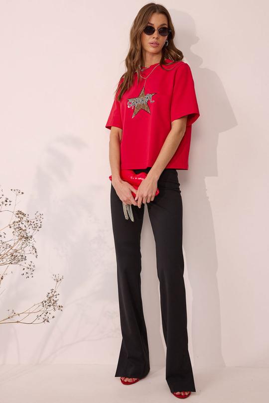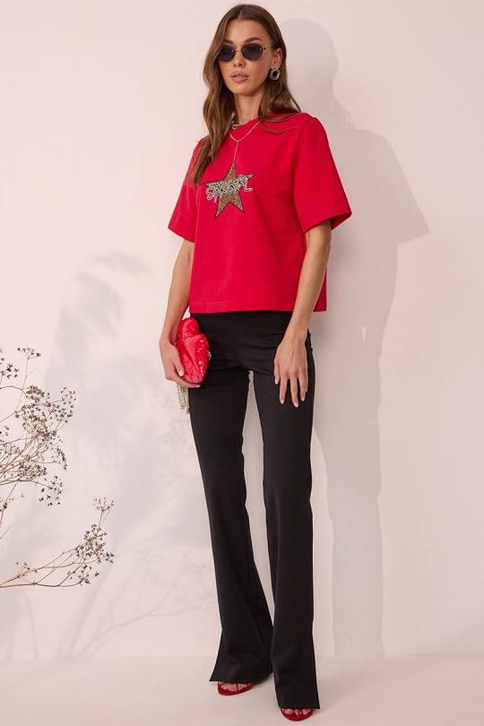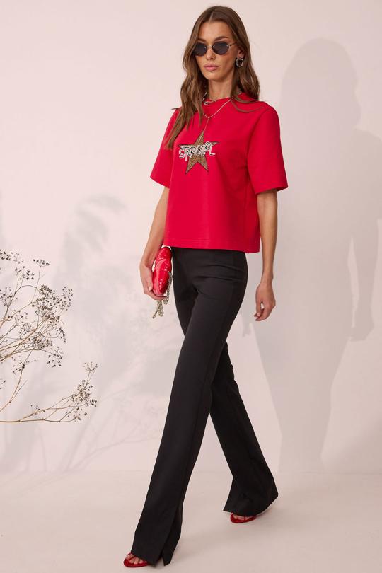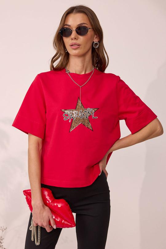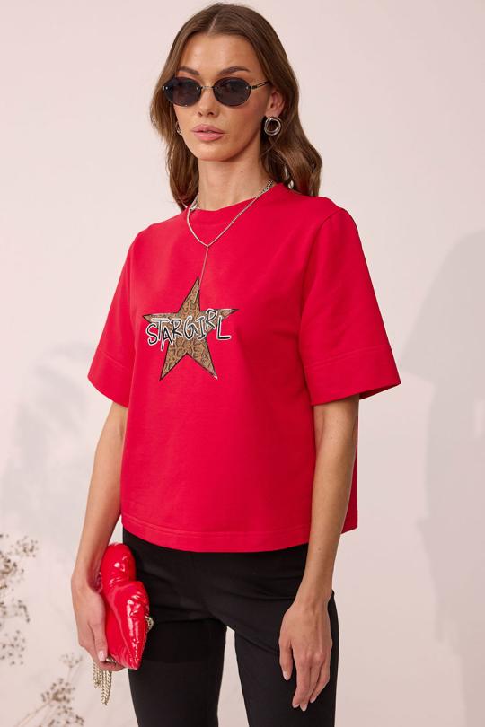 Джемпер прямого силуэта из трикотажного полотна. Горловина округлая. Рукав втачной. По переду дизайнерская печать.
