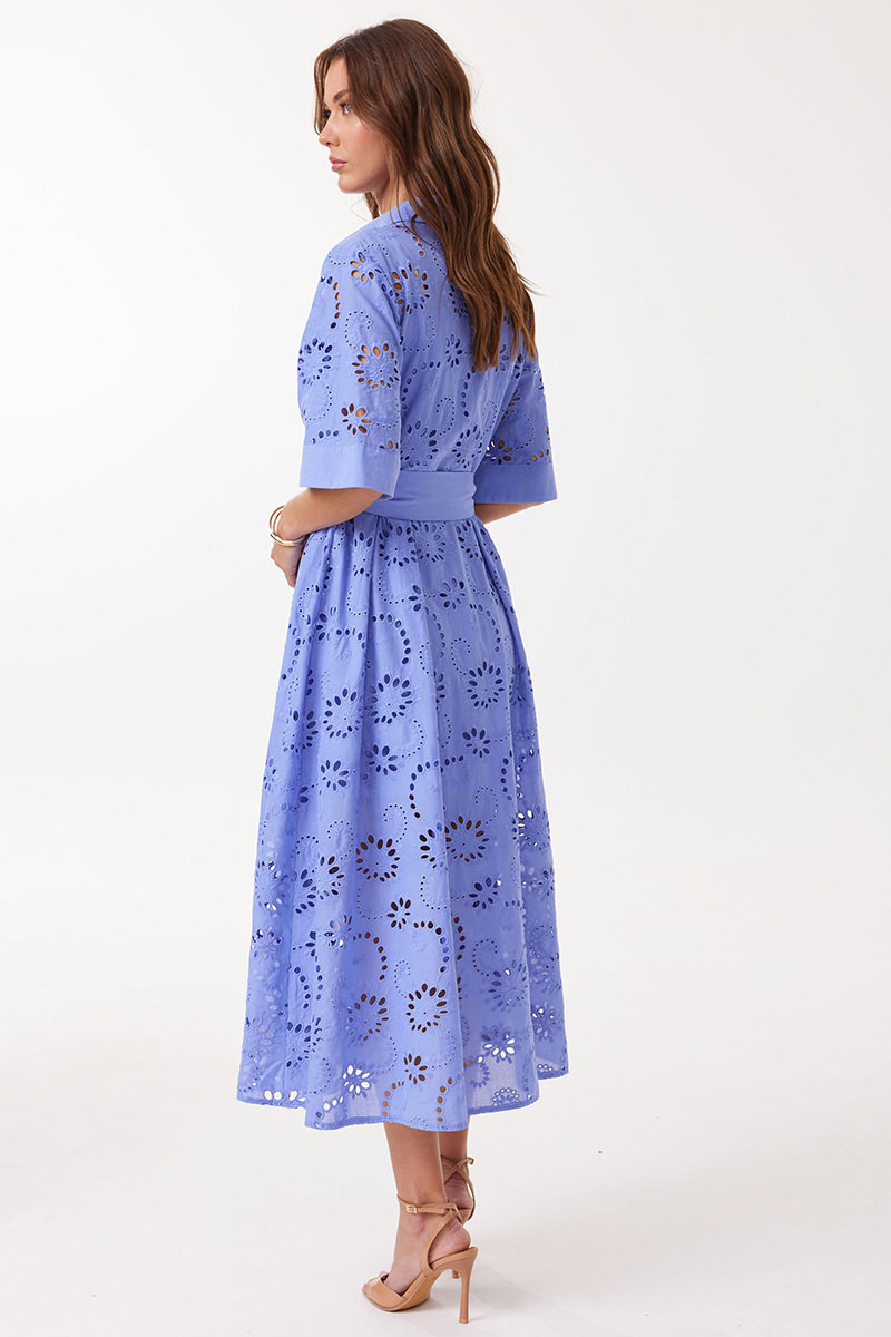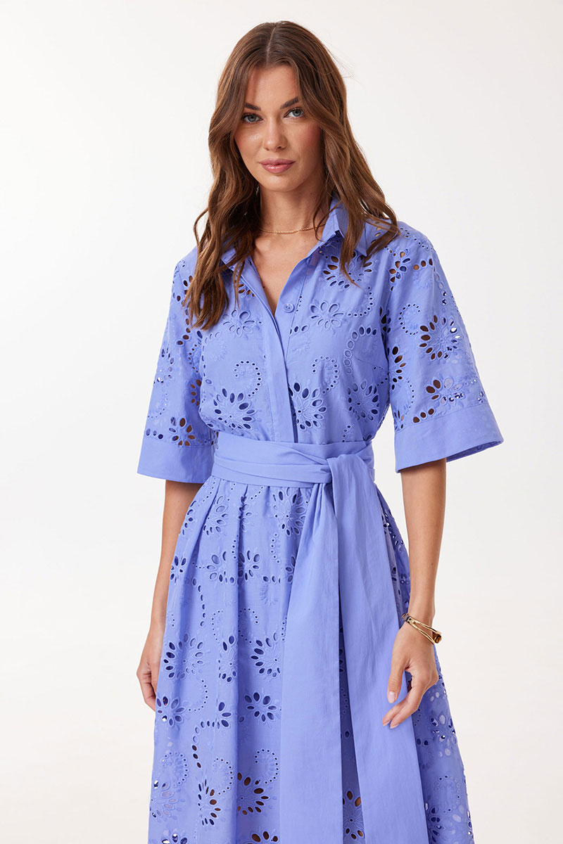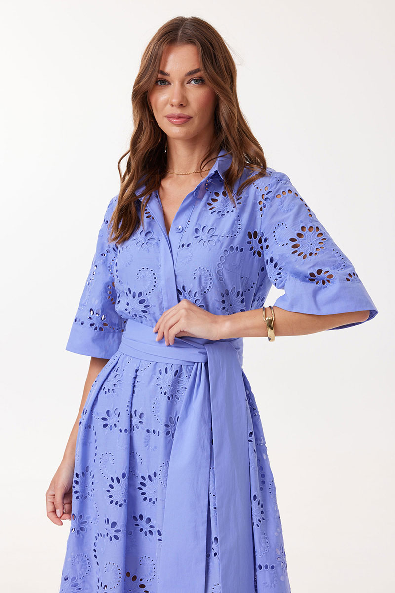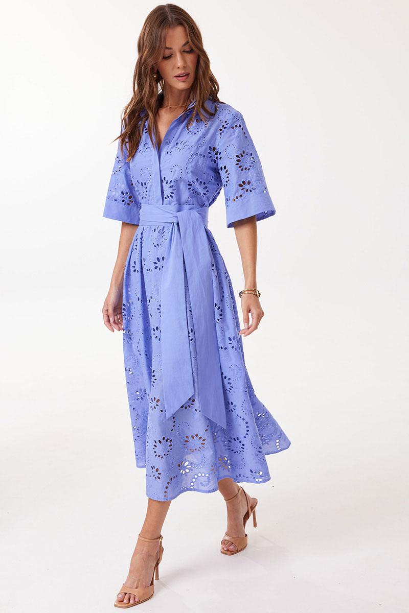 Платье прямого силуэта расширенное книзу из ришелье. Воротник рубашечного типа с застежкой по центру на петли и пуговицы. Рукав втачной длиной до локтя, расширенный книзу. Платье отрезное по линии талии. Нижняя часть платья со складками по линии притачивания с лифом. Платье частично на подкладке. В комплект входит пояс. В комплект входит платье на бретелях. Модель подойдет на рост 164-170 см.
