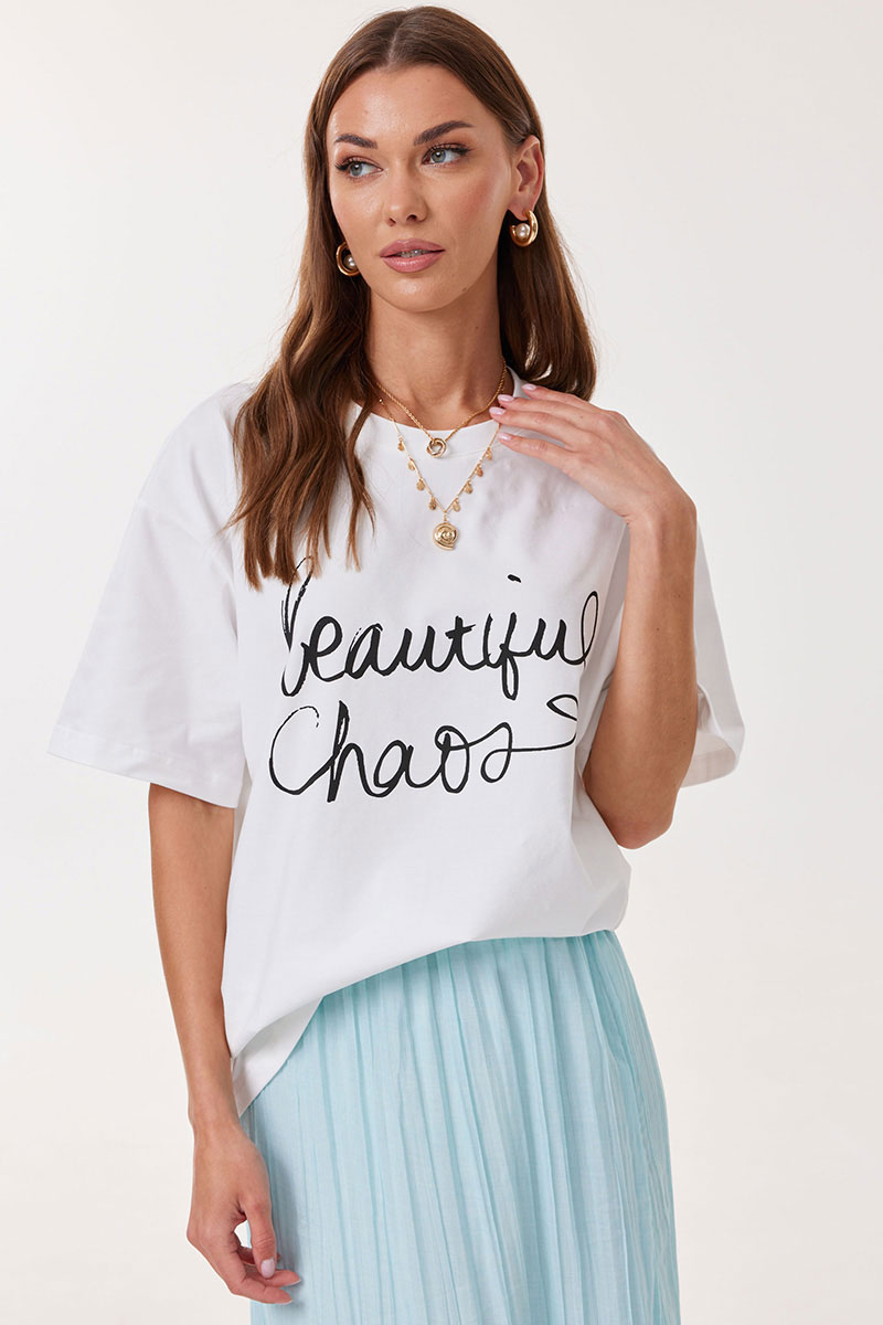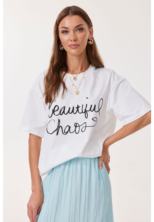 Джемпер женский свободного силуэта из комфортного трикотажного полотна, длиной до линии бедер. Горловина округлая. Рукав со спущенной линией плеча длиной до локтя. По переду расположена дизайнерская печать. Обращаем ваше внимание, что фурнитура может отличаться от фото. Модель подойдет на рост 164-170 см.