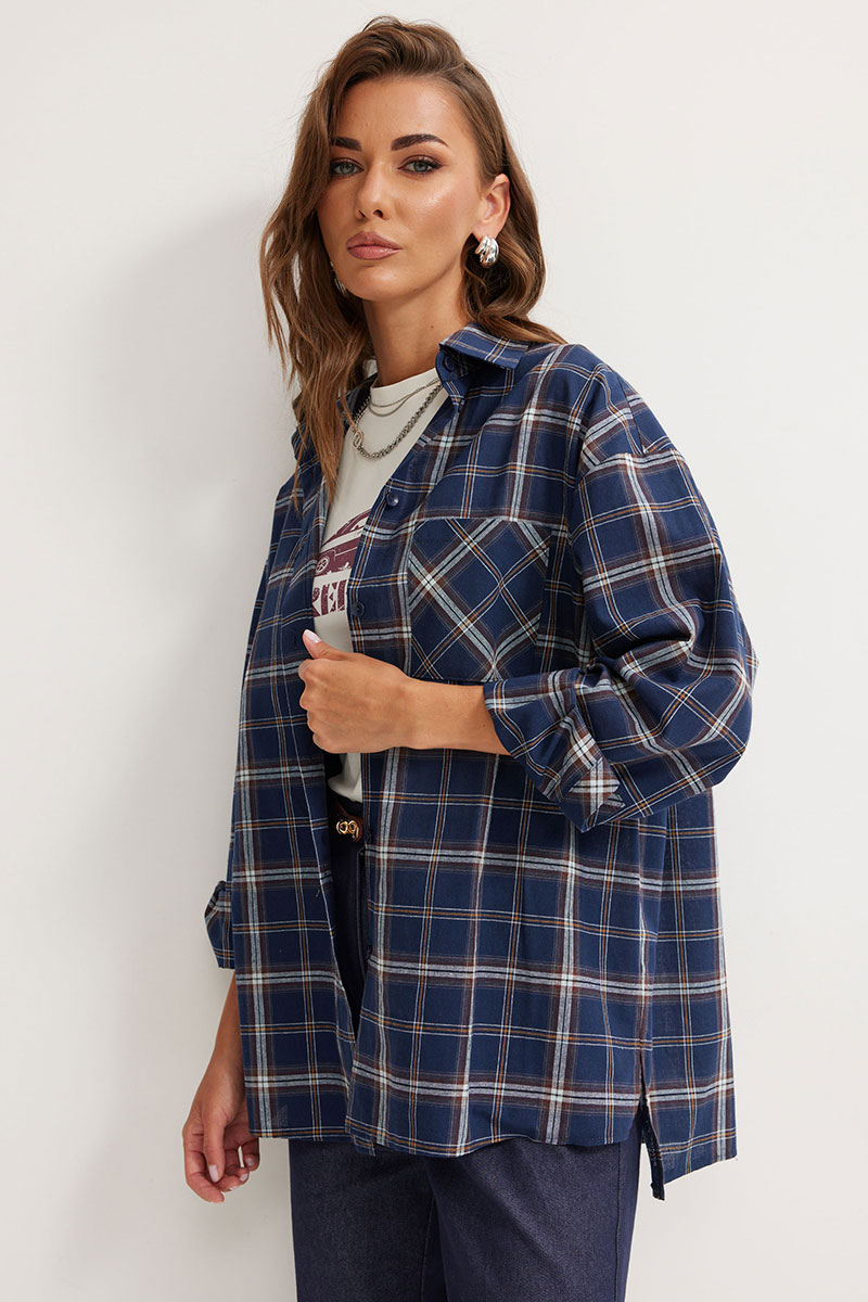 Блузка прямого силуэта с фигурным низом из блузочной ткани. Воротник рубашечного типа с центральной застежкой на петли и пуговицы. Рукав со спущенной линией плеча длинный, по низу манжета на петлю и пуговицу. На спинке кокетка и складки. Обращаем ваше внимание, что фурнитура может отличаться от фото.
