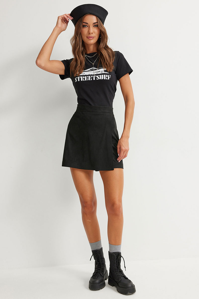 Прямые шорты с отлетной деталью по переду, имитирующей юбку, с двумя декоративными пуговицами. По верху шорт притачной пояс с застежкой на потайную молнию в боковом шве. На задних половинках вытачки. Обращаем ваше внимание, что фурнитура может отличаться от фото.