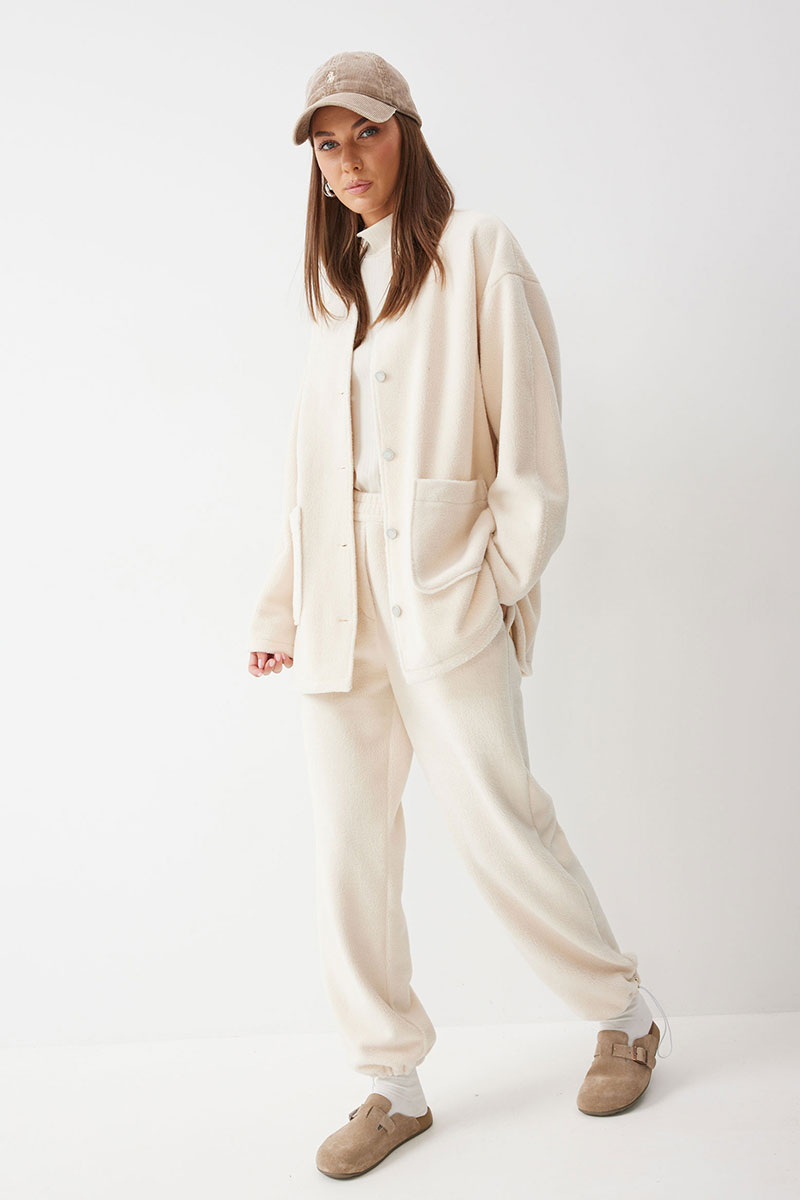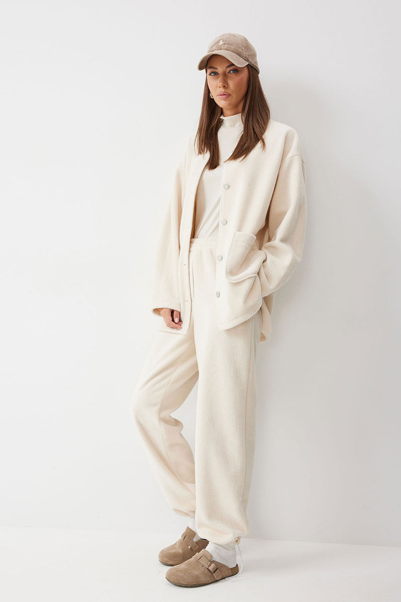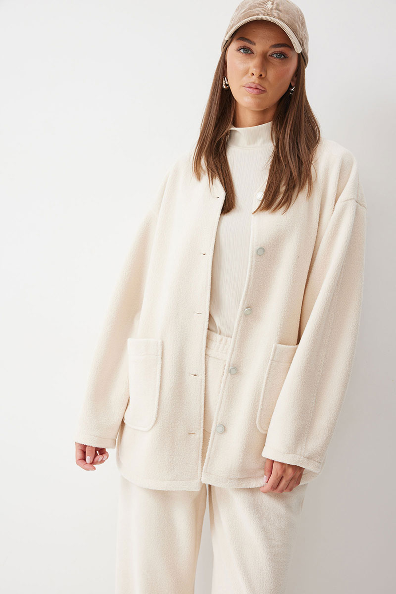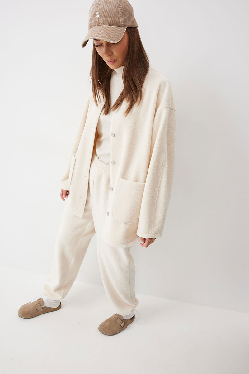 Жакет прямого силуэта с фигурным низом из трикотажного полотна. Горловина округлая, по центру застежка на кнопки. Рукав со спущенной линией плеча. По переду накладные карманы. Жакет без подкладки.