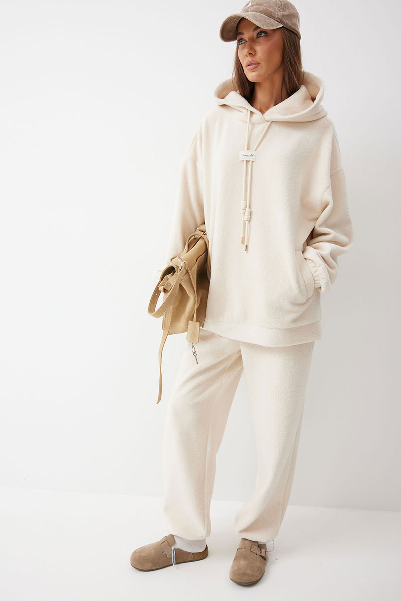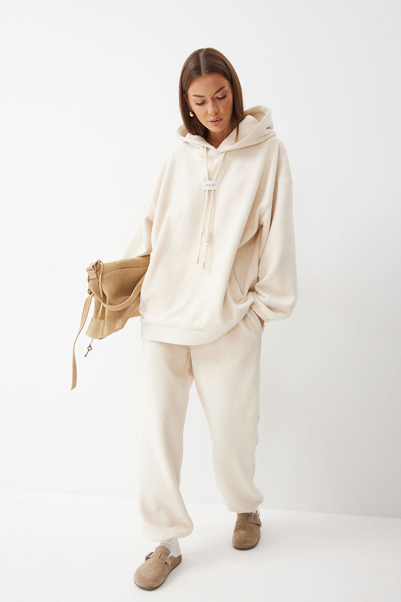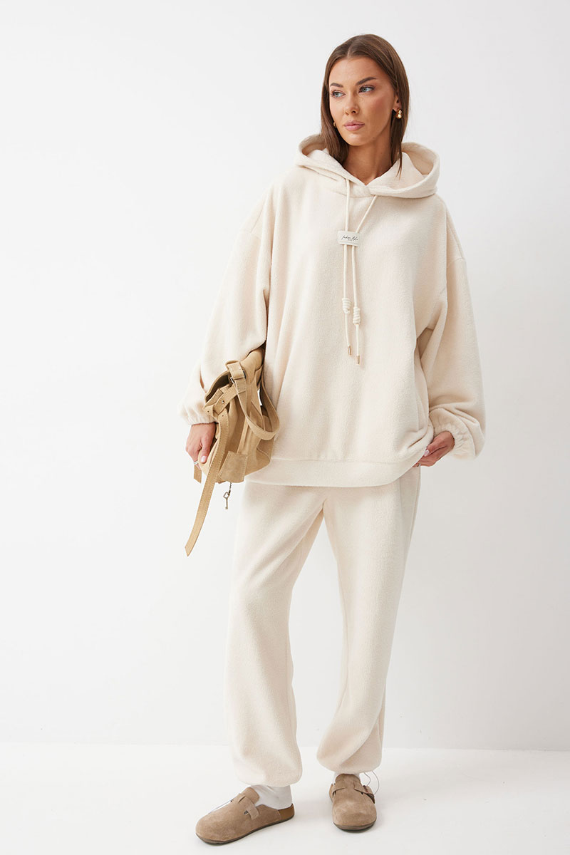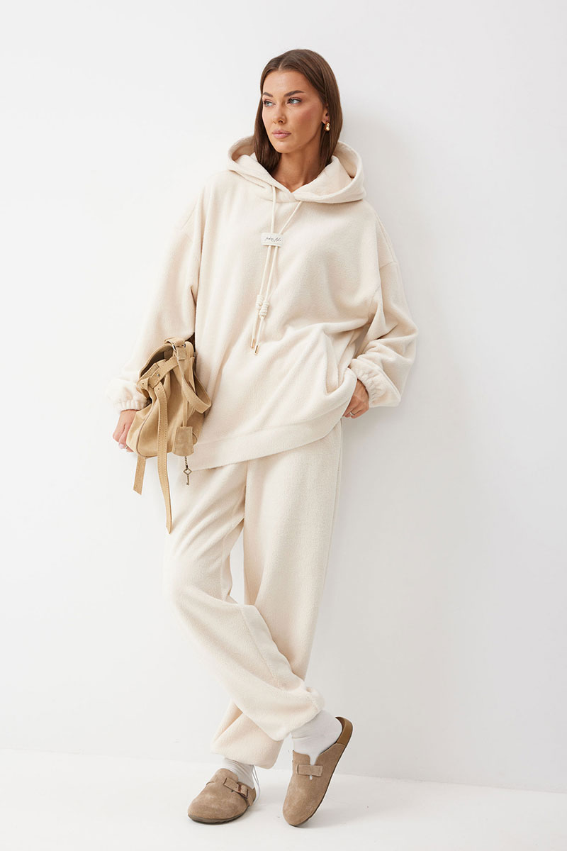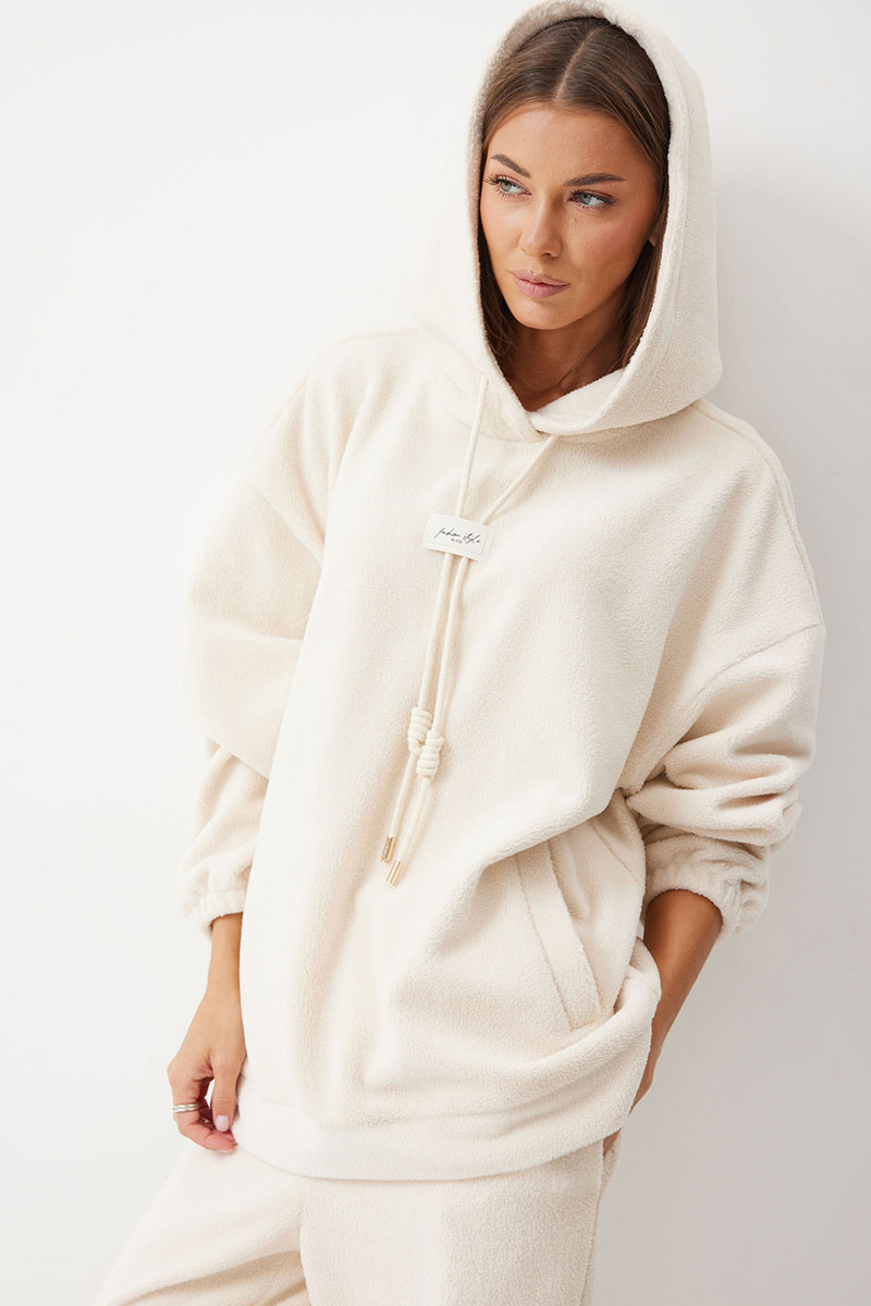 Джемпер прямого силуэта из комфортного трикотажного полотна. Горловина обработана капюшоном. Рукав со спущенной линией плеча, по низу на резинке. По низу джемпера притачной пояс. По