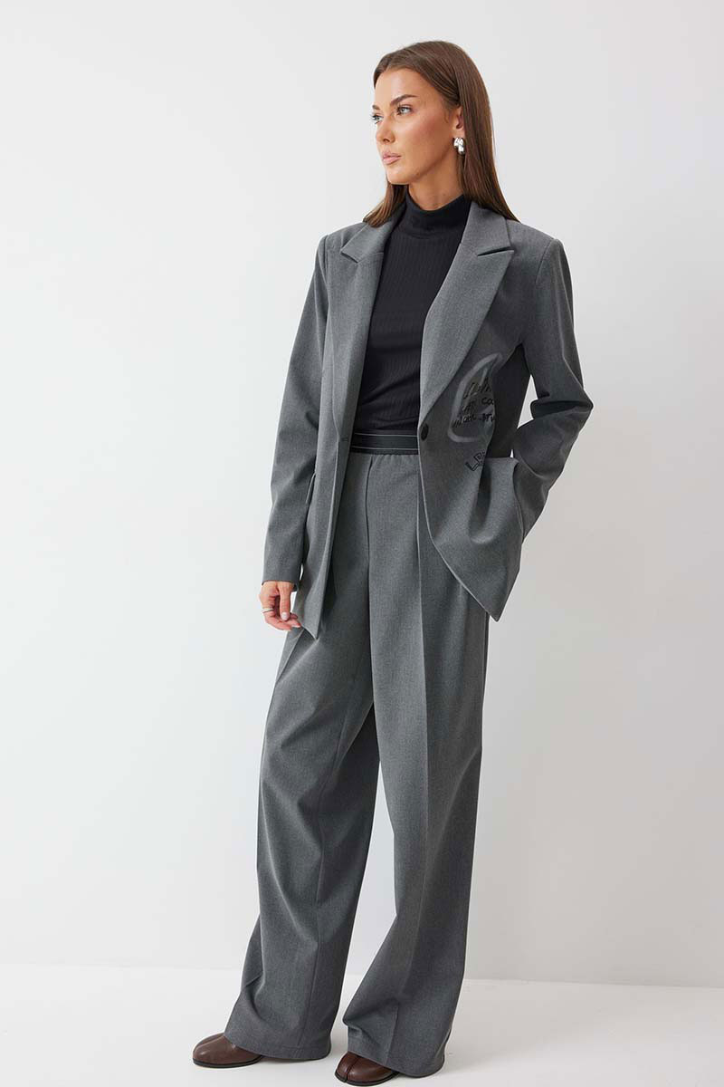 Жакет прямого силуэта из костюмной ткани. Воротник пиджачного типа с центральной застежкой на петлю и пуговицу. Рукав втачной двухшовный с декоративной шлицей и пуговицами. По переду и спинке талиевые вытачки. По переду карман с клапаном. По переду и спинке дизайнерская печать. Жакет на подкладке. Обращаем ваше внимание, что фурнитура может отличаться от фото.