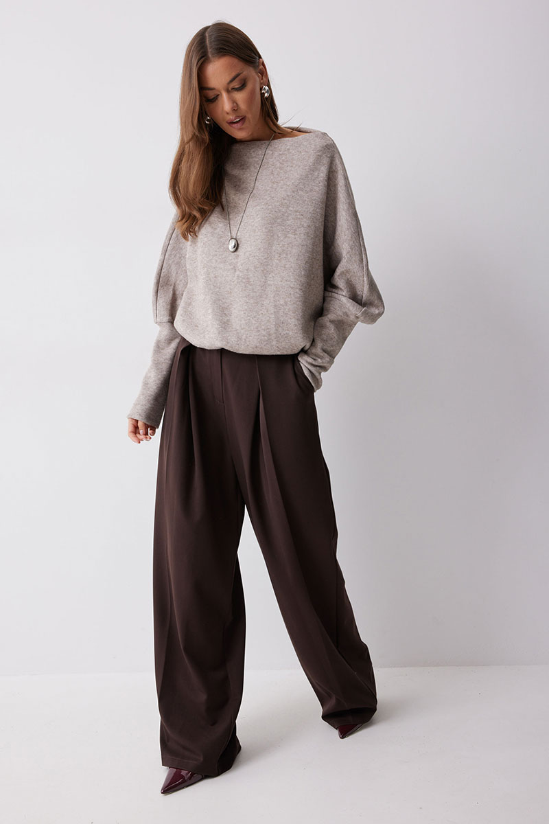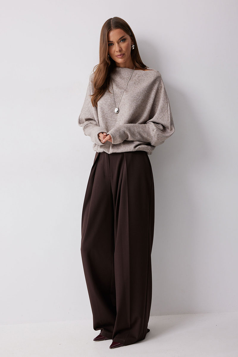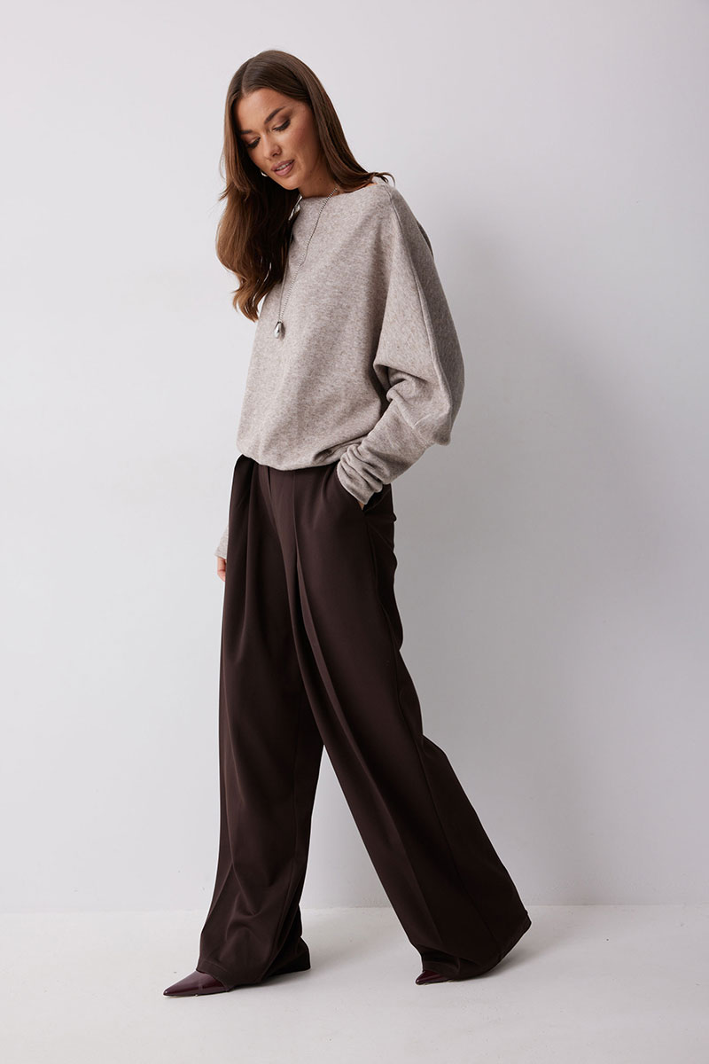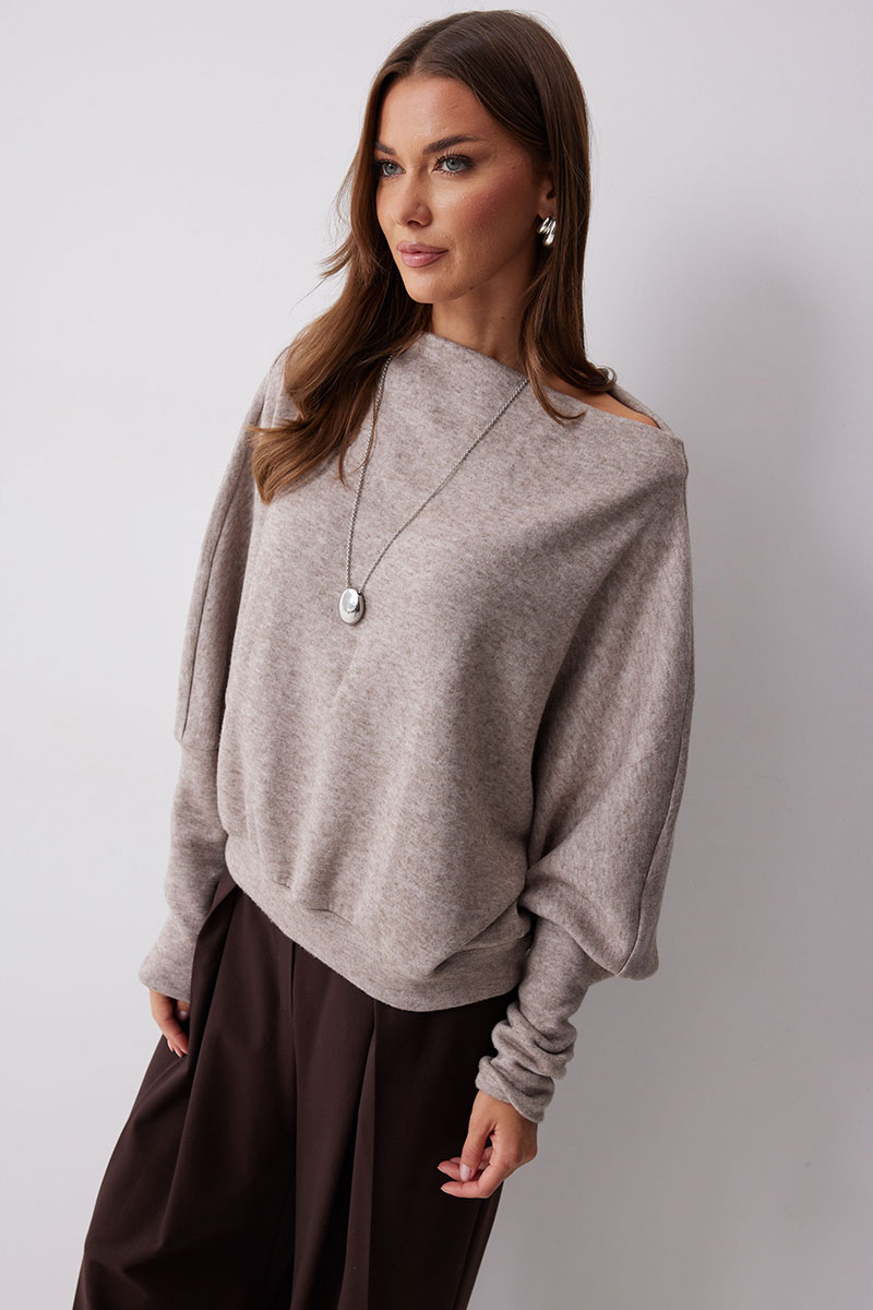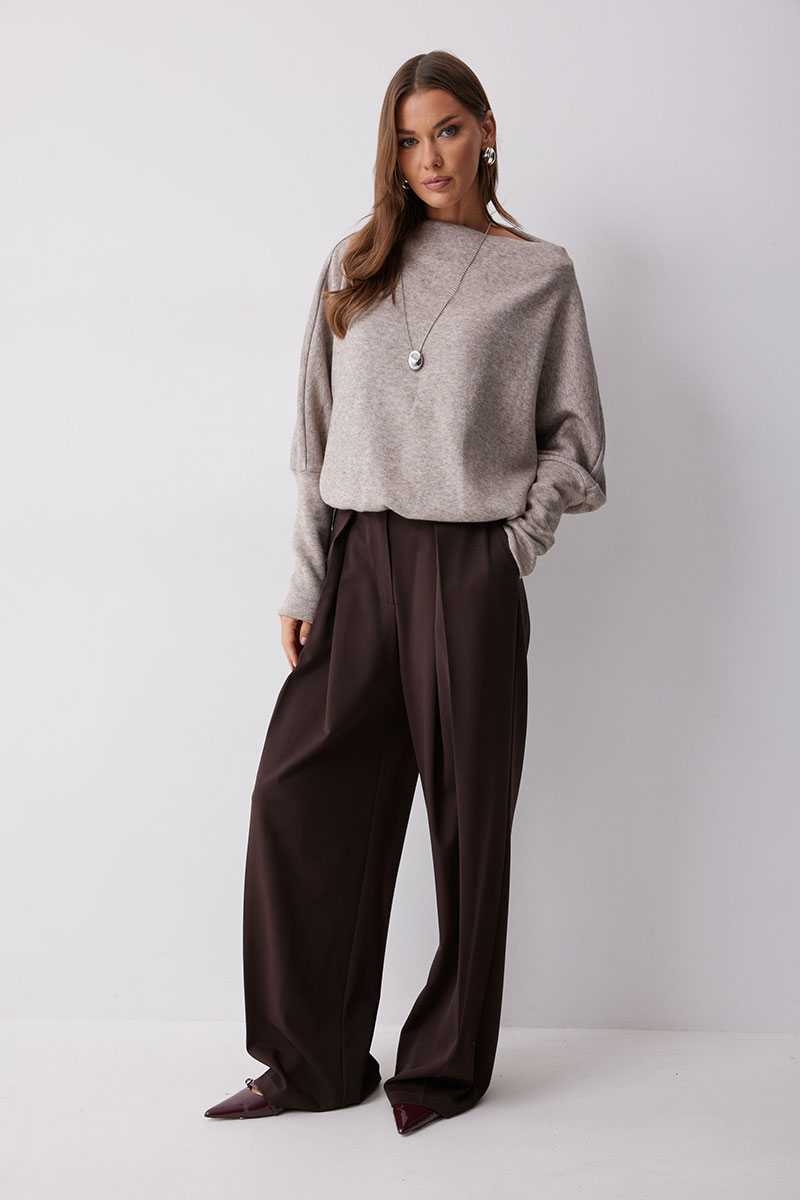 Стильный джемпер из комфортного трикотажного полотна. Рукав цельнокроеный, на манжете по низу. Горловина – цельнокроеная стойка. По низу джемпера – притачная планка.