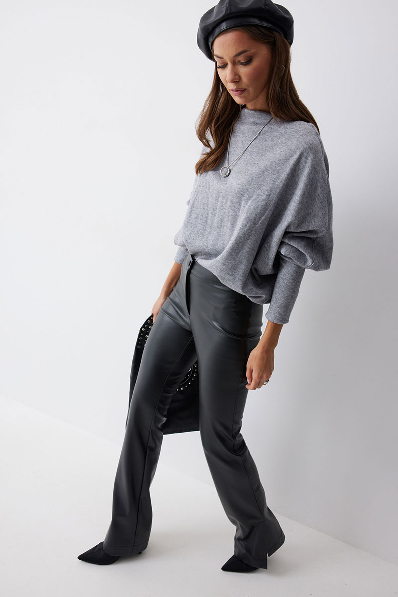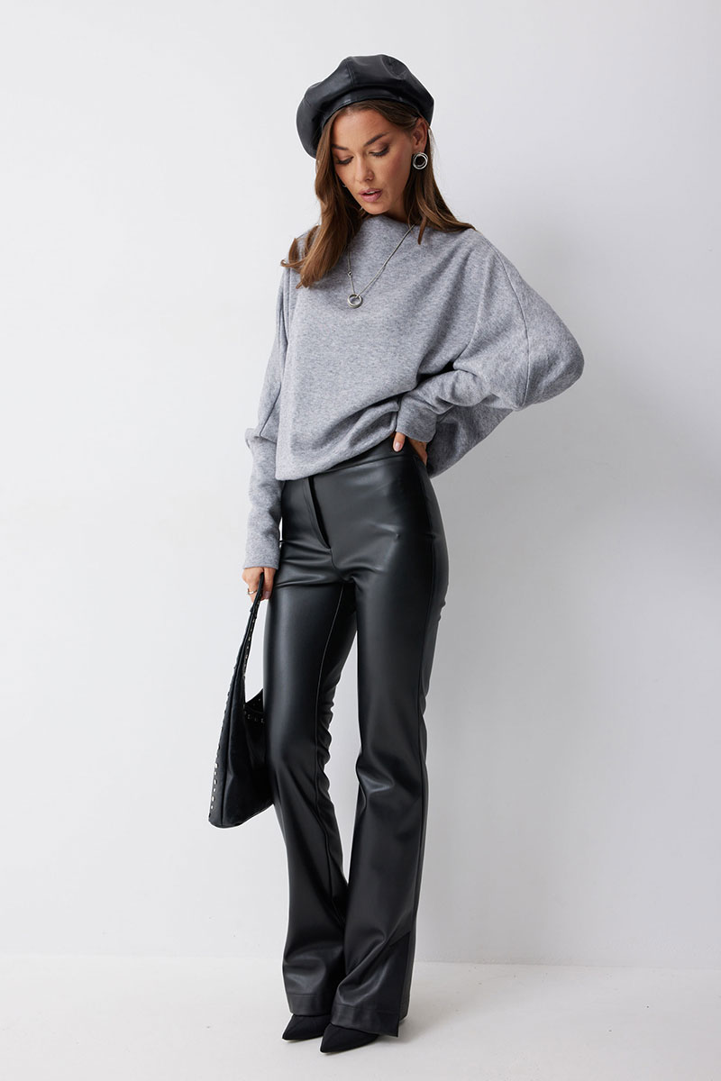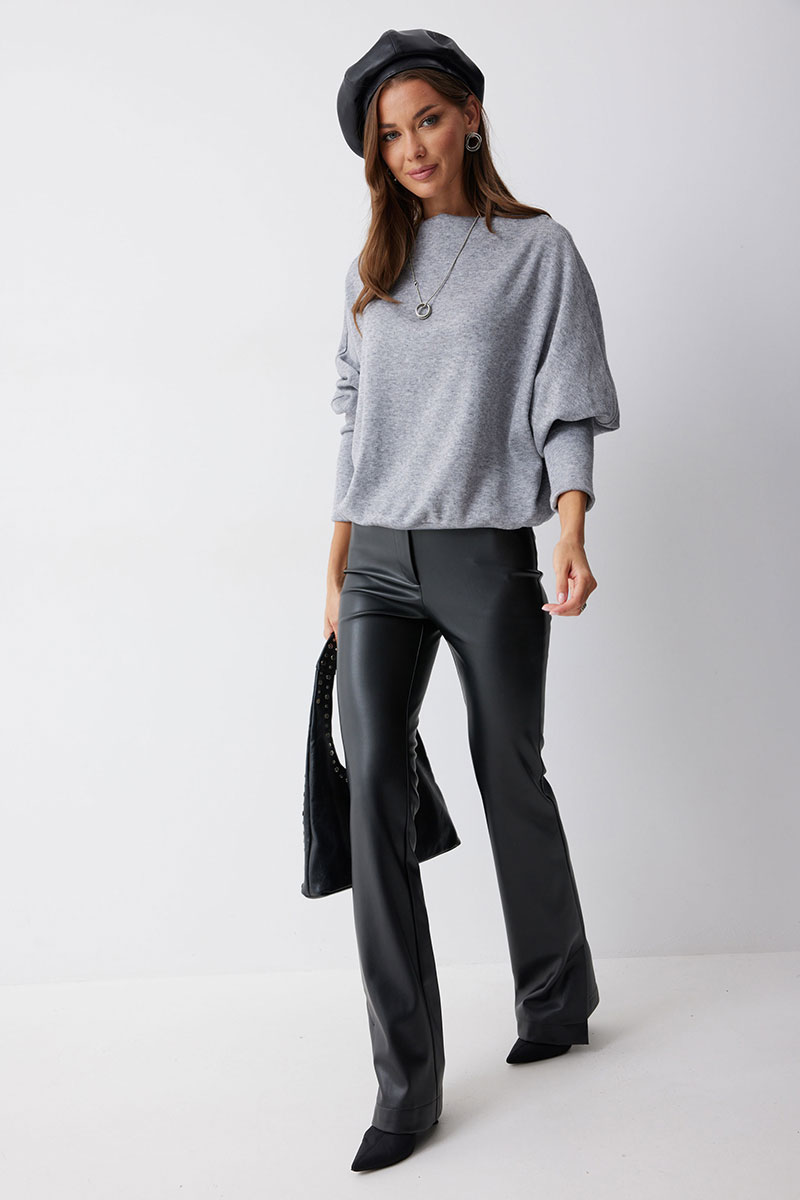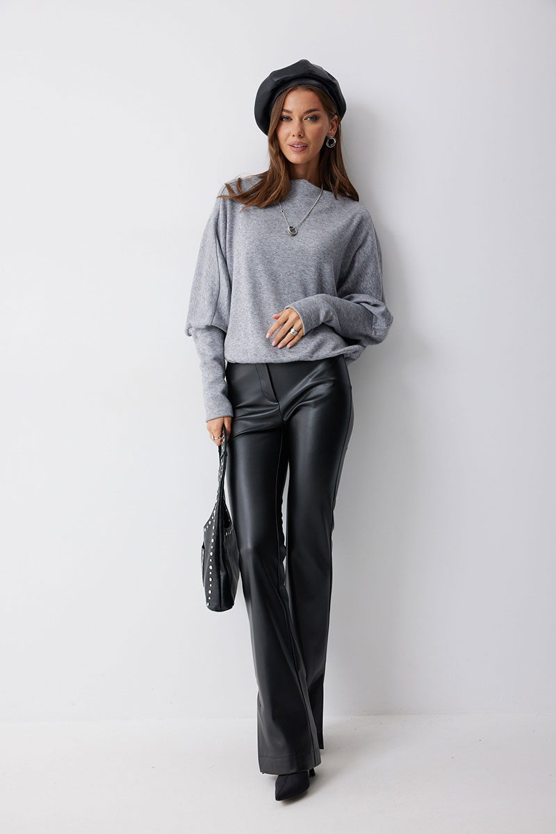 Стильный джемпер из комфортного трикотажного полотна. Рукав цельнокроеный, на манжете по низу. Горловина – цельнокроеная стойка. По низу джемпера – притачная планка.
