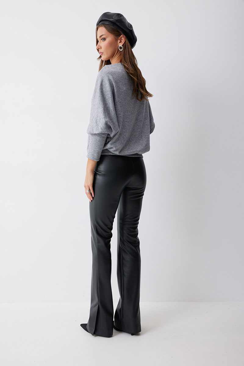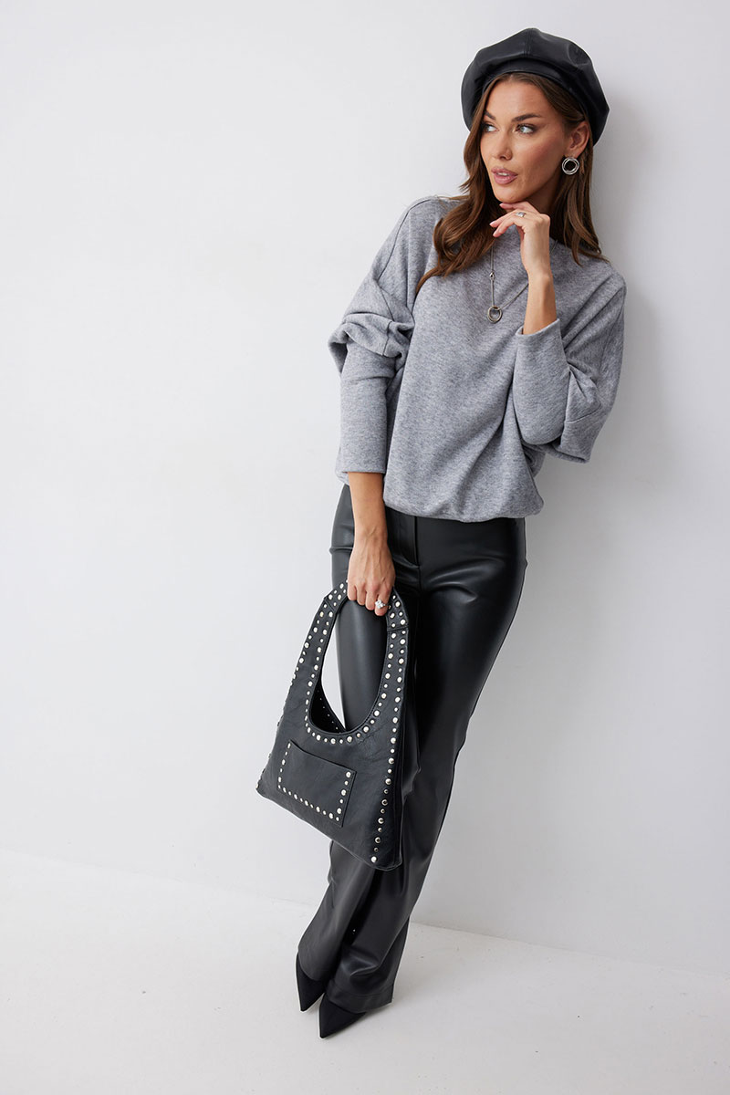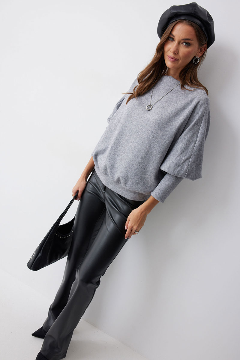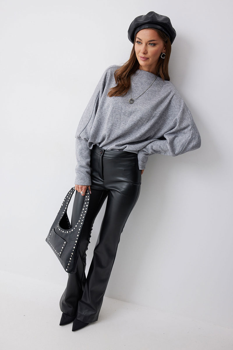 Стильный джемпер из комфортного трикотажного полотна. Рукав цельнокроеный, на манжете по низу. Горловина – цельнокроеная стойка. По низу джемпера – притачная планка.