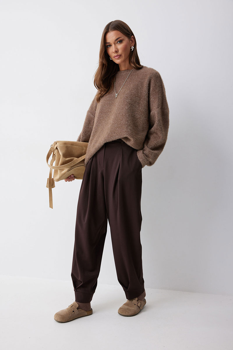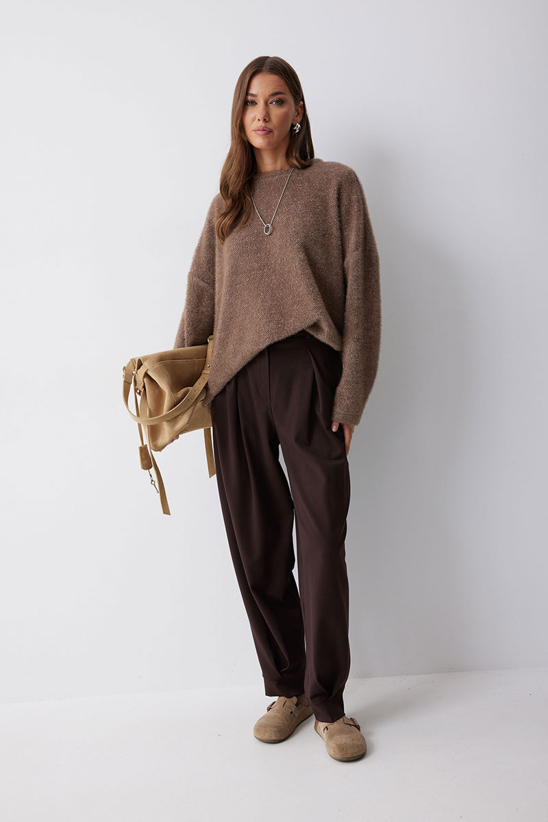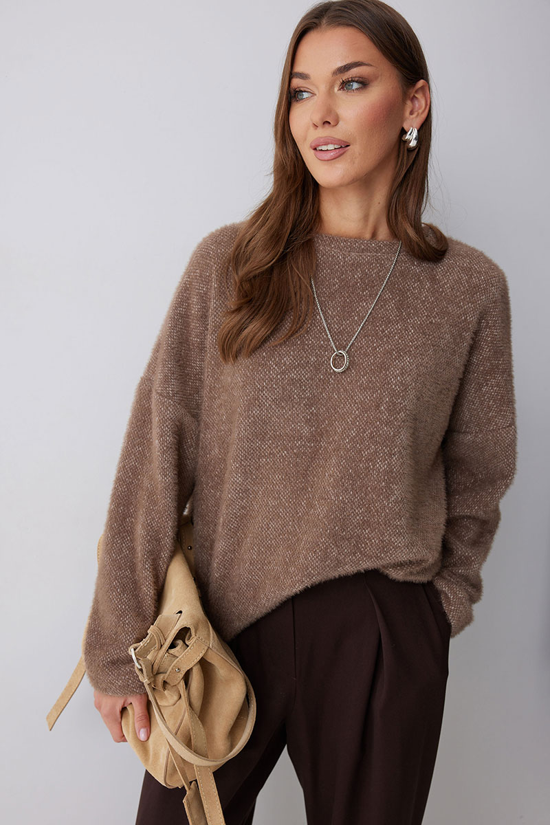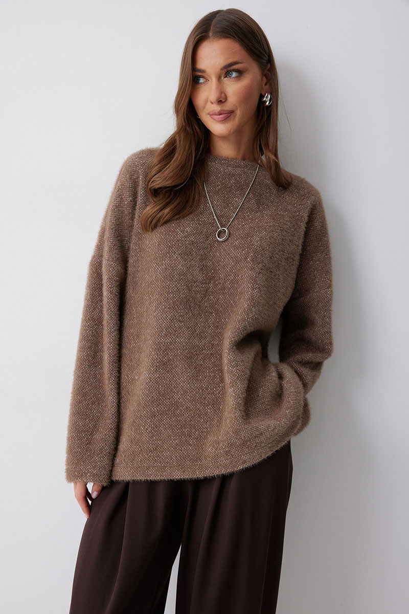 Джемпер прямого силуэта из трикотажного полотна. Горловина округлая. Рукав со спущенной линией плеча.