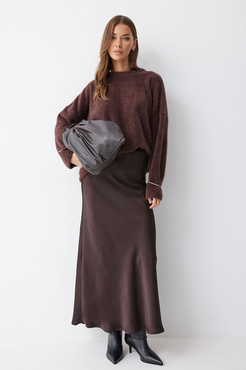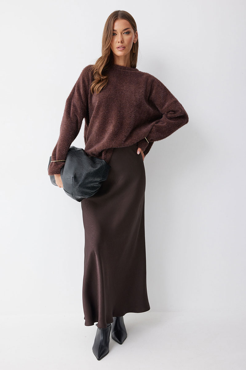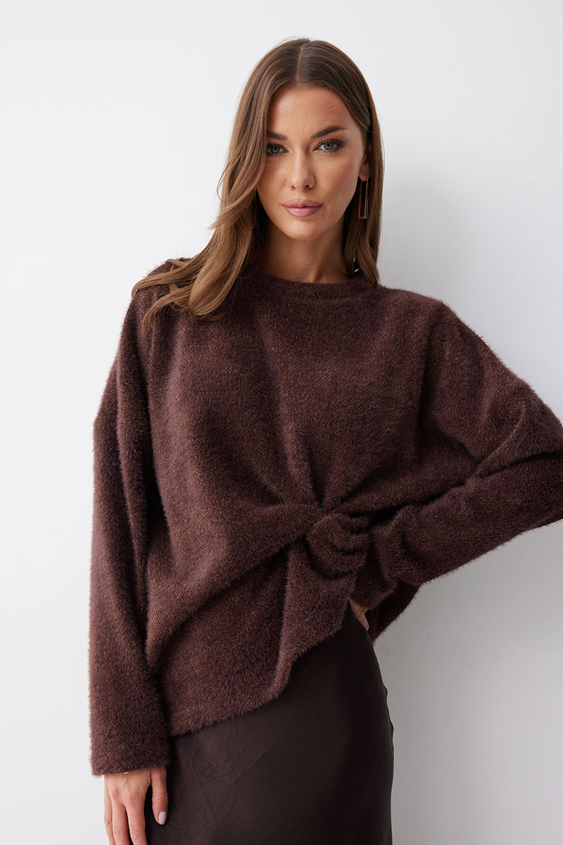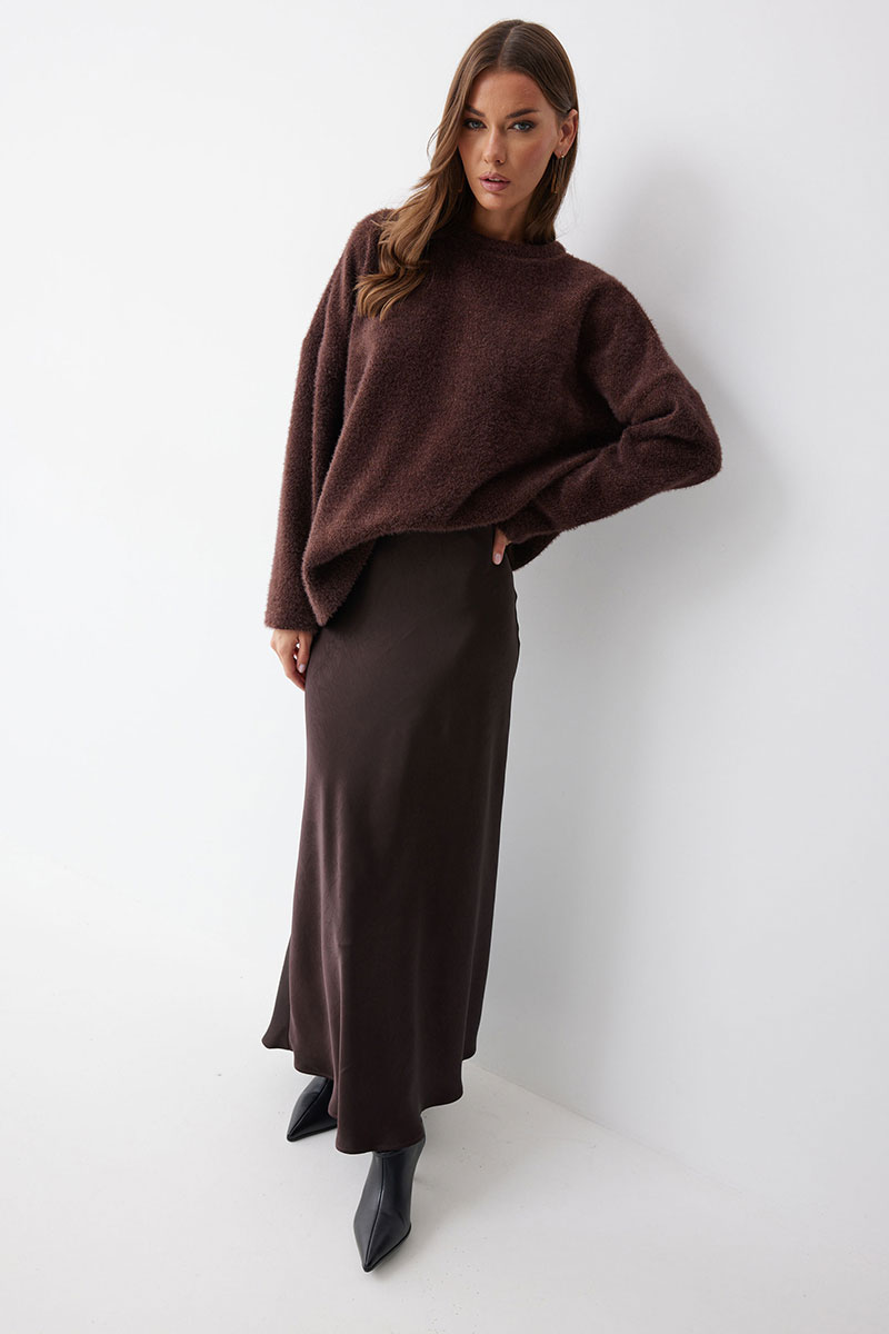Джемпер прямого силуэта из трикотажного полотна. Горловина округлая. Рукав со спущенной линией плеча.