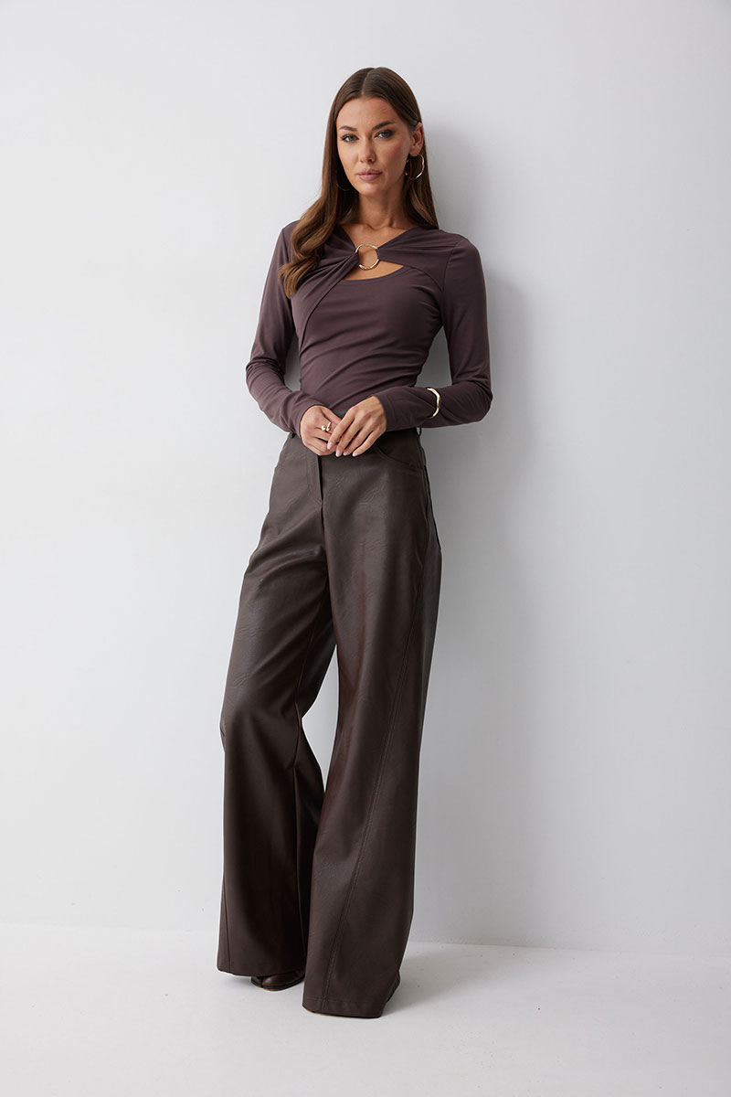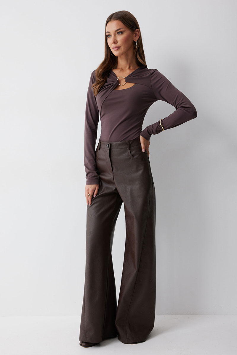 Джемпер прилегающего силуэта из трикотажного полотна. Горловина с фигурным вырезом декоративными складками и фурнитурой. Рукав втачной удлиненный . Обращаем ваше внимание, что фурнитура может отличаться от фото.