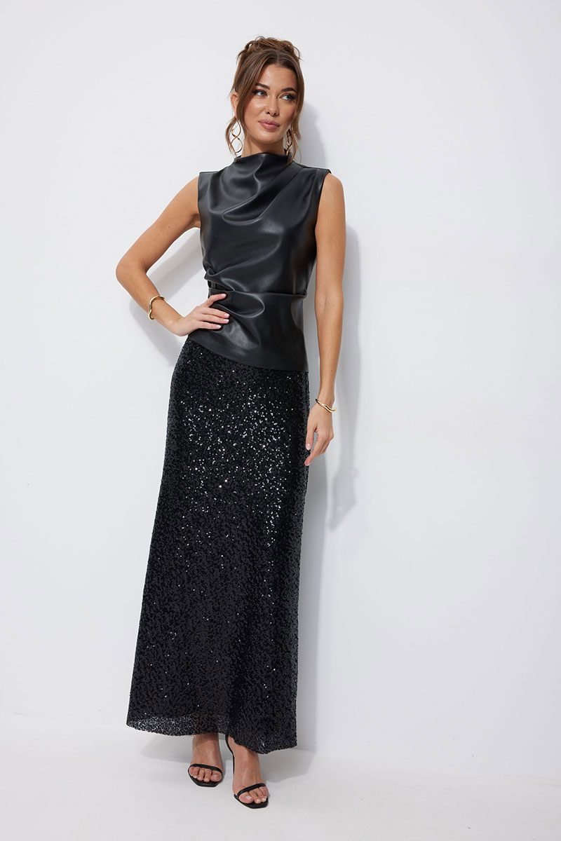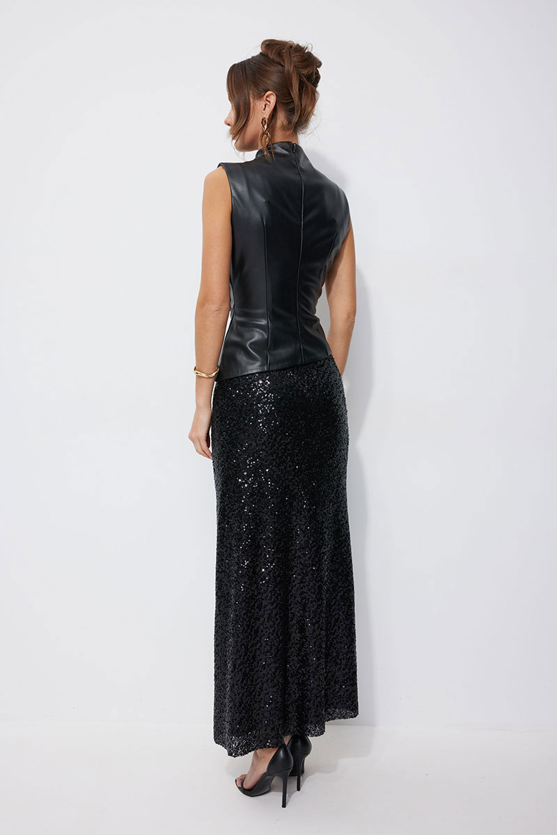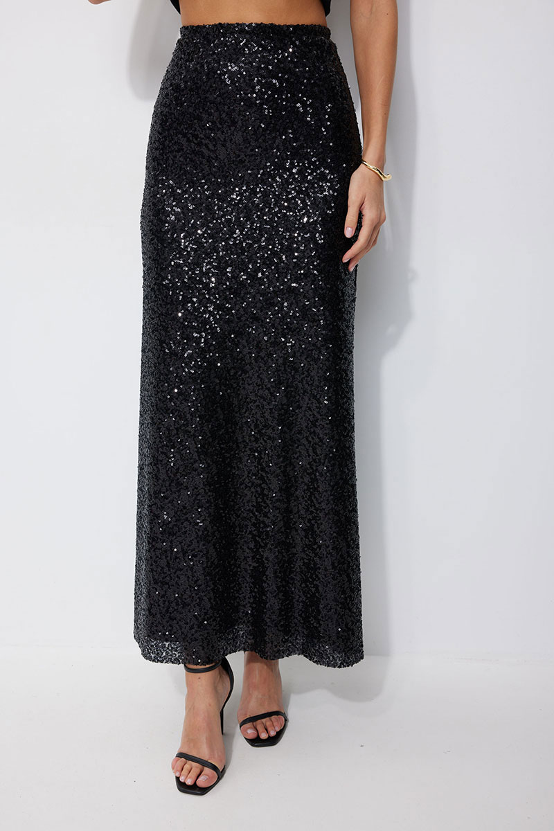 Юбка полуприлегающего силуэта расширенная книзу длиной макси из ткани с пайеткой. Юбка с резинкой по линии талии. Юбка на подкладке.
