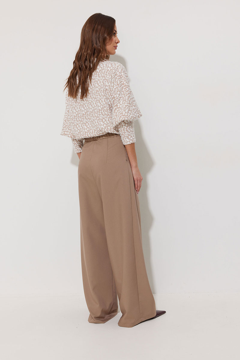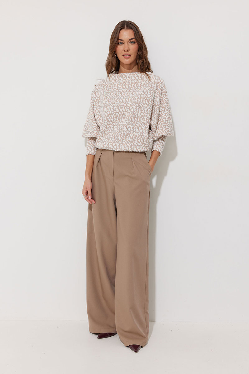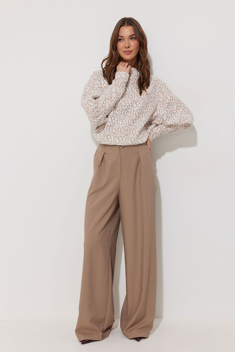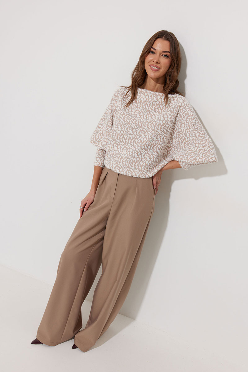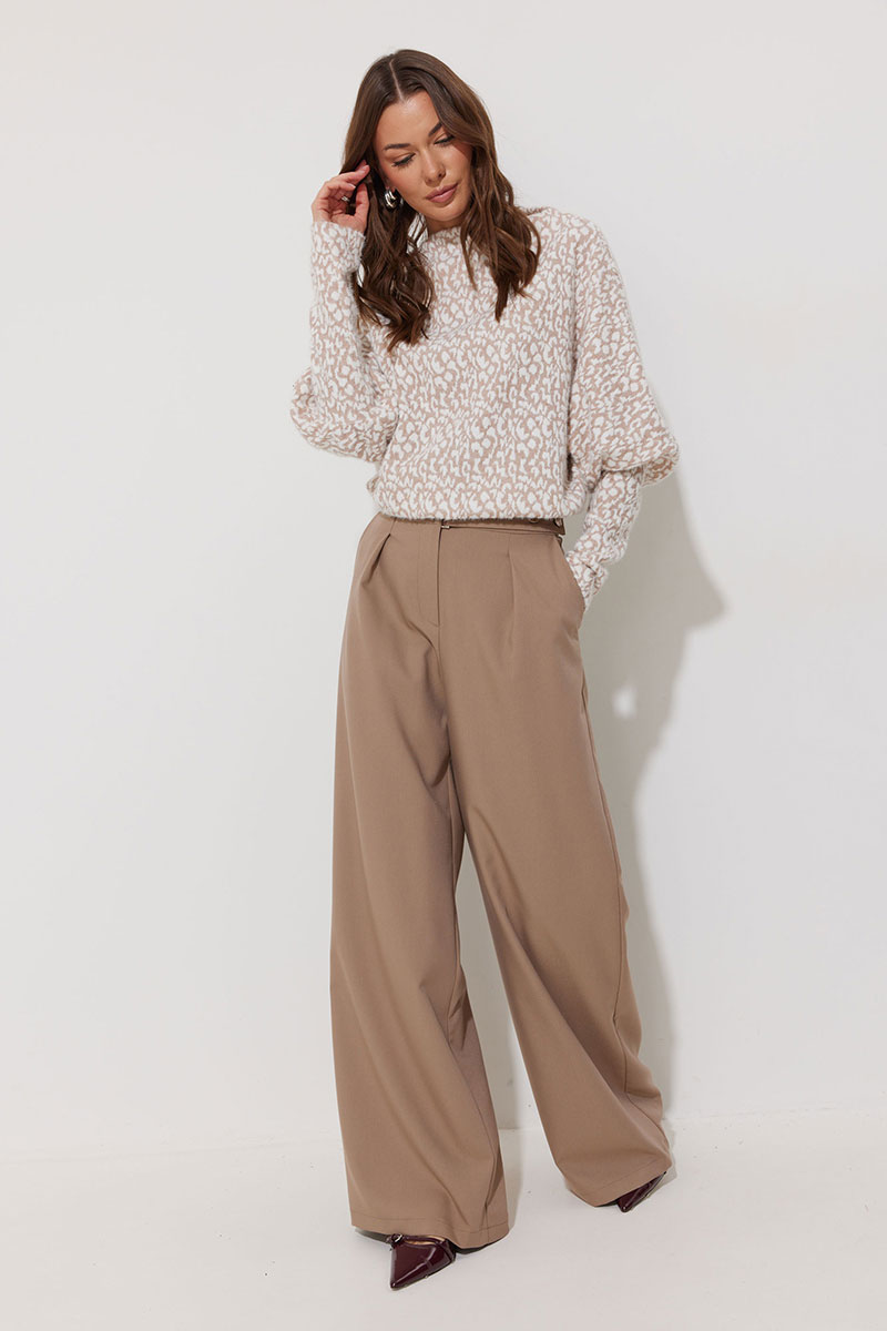 Джемпер прямого силуэта из комфортного трикотажного полотна. Горловина – цельнокроеная стойка. Рукав цельнокроеный, по низу на манжете. По низу джемпера – притачная планка.