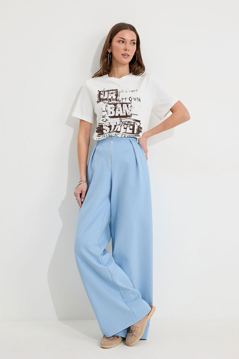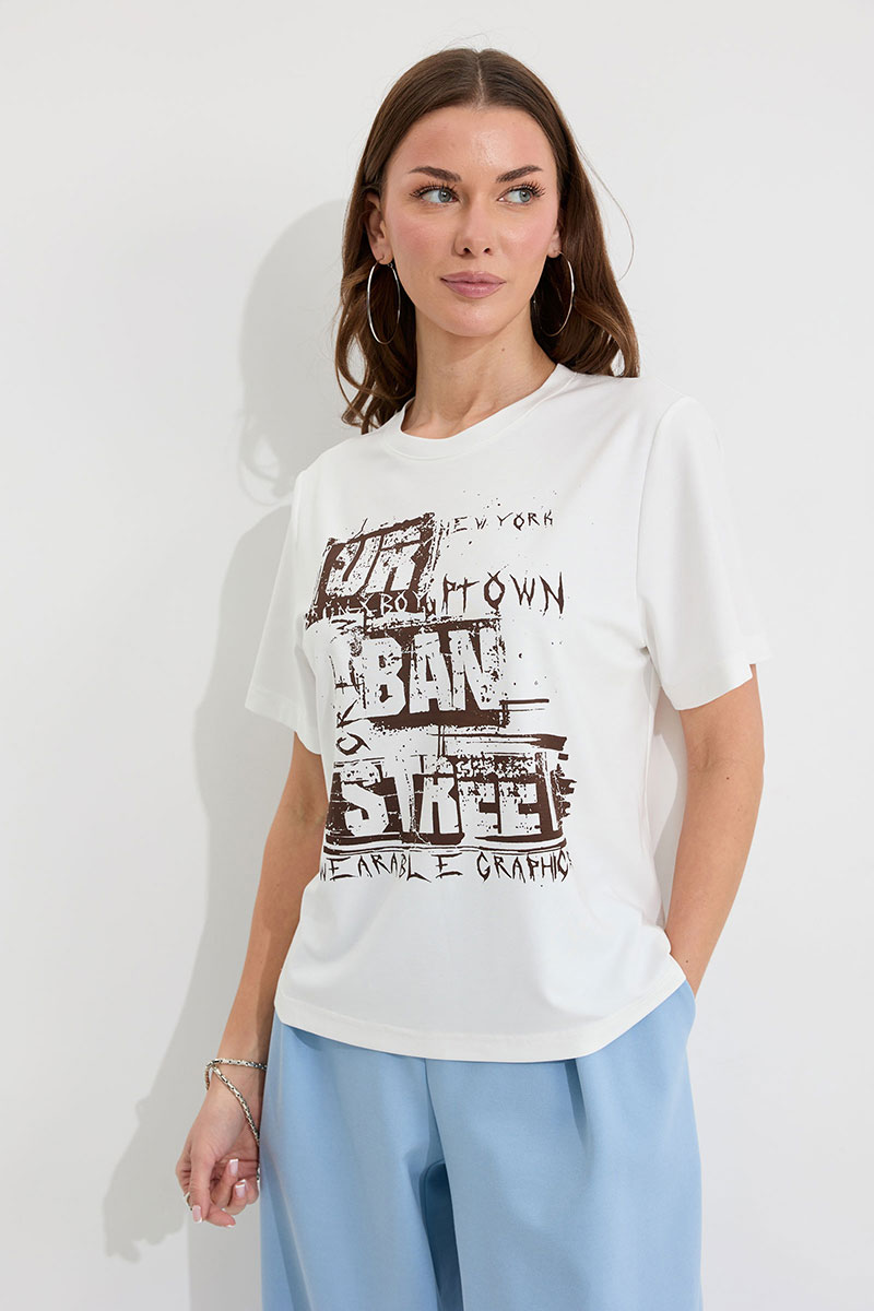 Джемпер полуприлегающего силуэта из трикотажного полотна. Горловина округлая. Рукав втачной короткий. По переду дизайнерский принт.