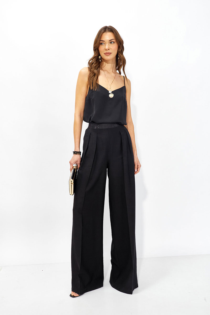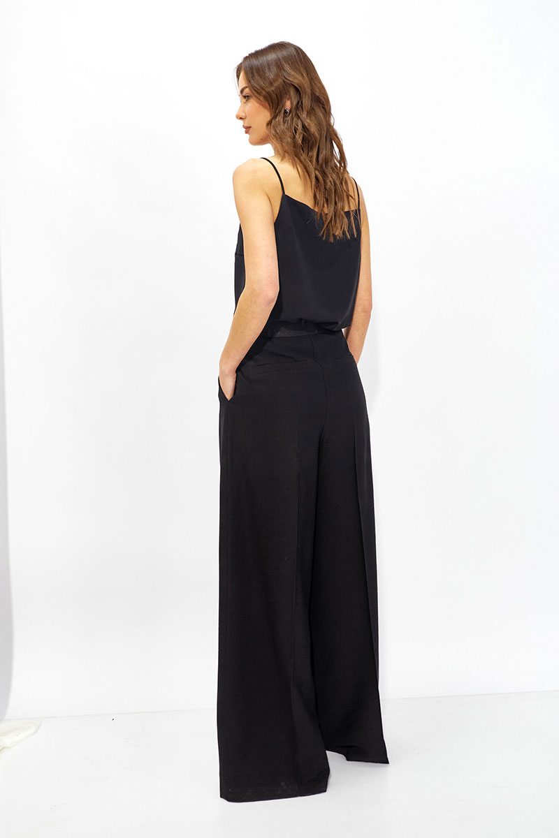 Базовый топ в бельевом стиле из струящейся ткани прямого силуэта с V-образным вырезом на тонких регулируемых бретелях. Его можно носить отдельно или в многослойных образах.