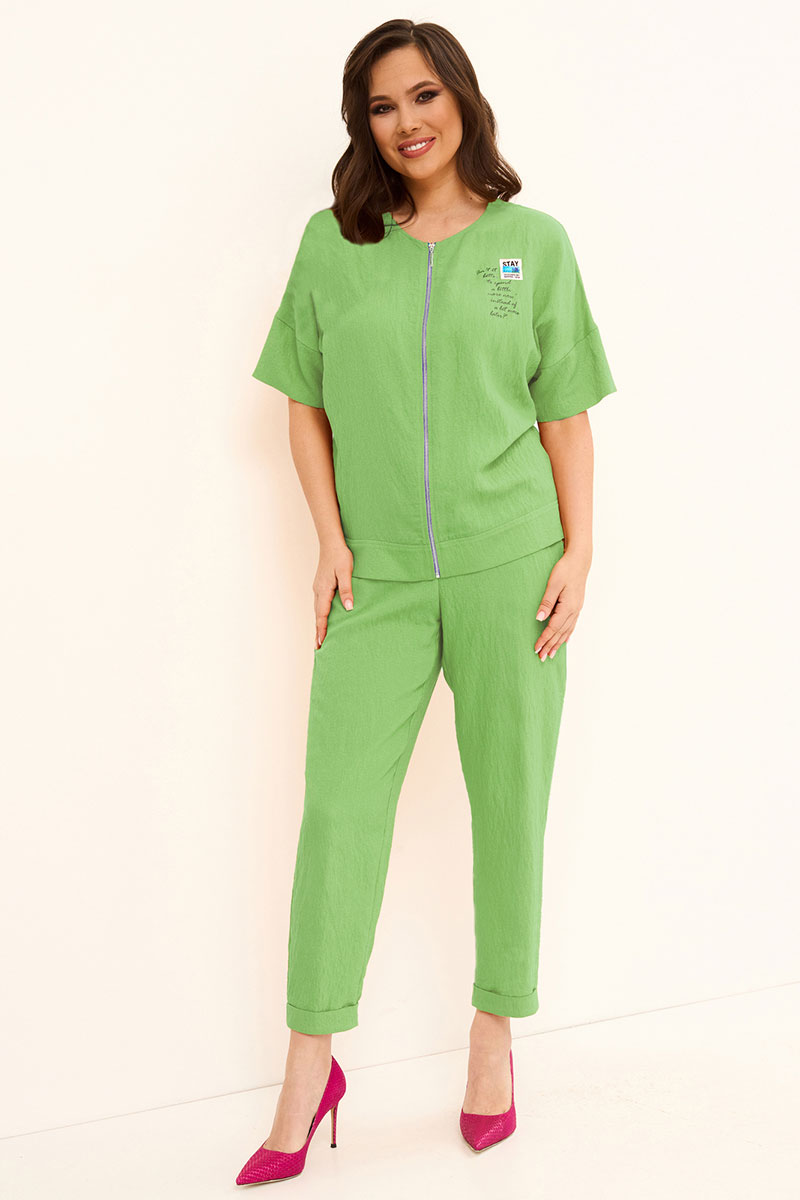 Жакет свободного кроя с центральной застежкой на молнию. Рукав спущен.