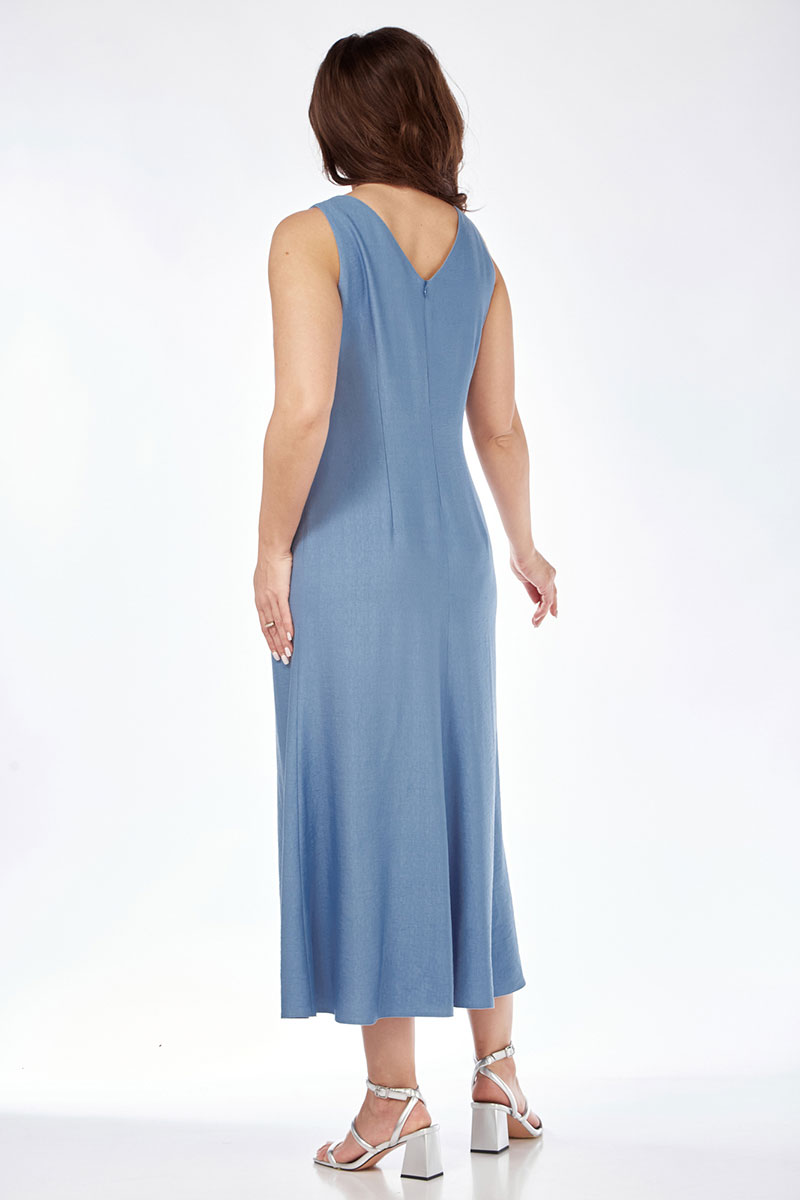 Платье А-образного силуэта без рукава. Выполнено из приятной к телу поливискозной ткани. По спинке застежка на потайную молнию.