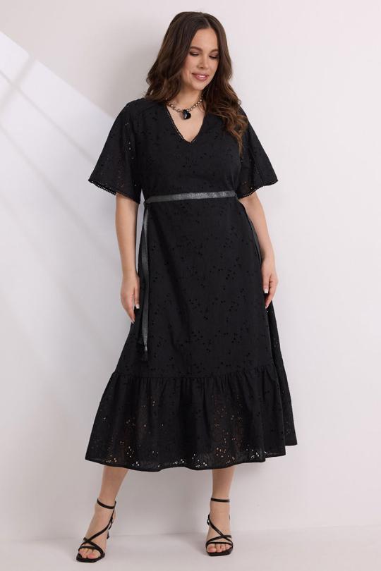 Легкое романтичное платье из натуральной хлопковой ткани. Платья А-образного силуэта с цельнокроеным рукавом, с застежкой по спинке на потайную молнию. Приталено за счет притачной декоративной тесьмы. Горловина с V-образным вырезом. Платье на подкладкке из хлопка. По низу платья притачной волан. По боковым швам платье дополнено карманами.