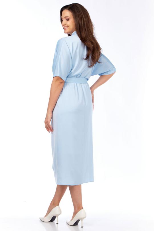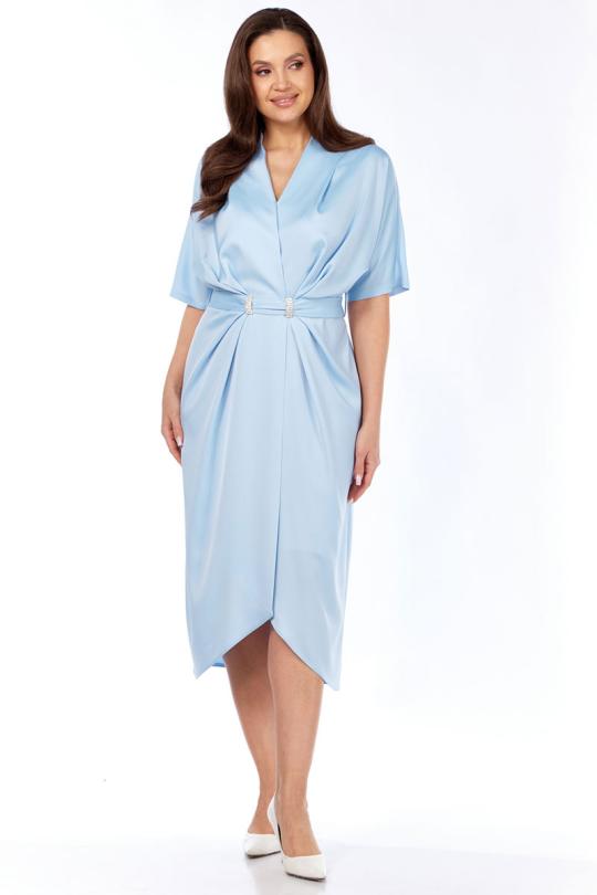 Элегантное нарядное платье приталенного силуэта. Оригинальный крой платья имитирует запах. Платье дополнено подкладкой. Рукав цельнокроеный. По талии платье отрезное. Дополнено съемным поясом с красивыми пряжками.