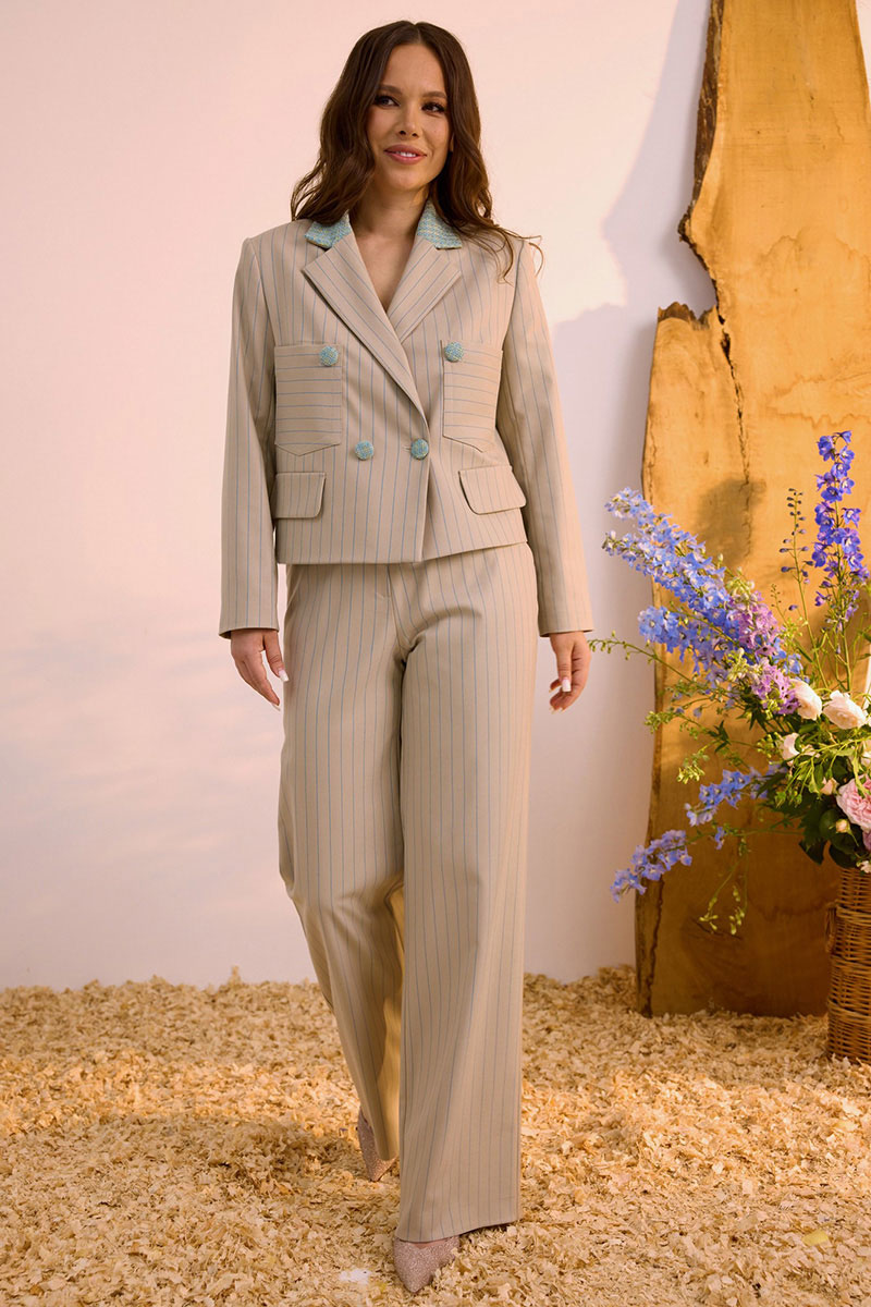 Стильный комплект из жакета и брюк.
