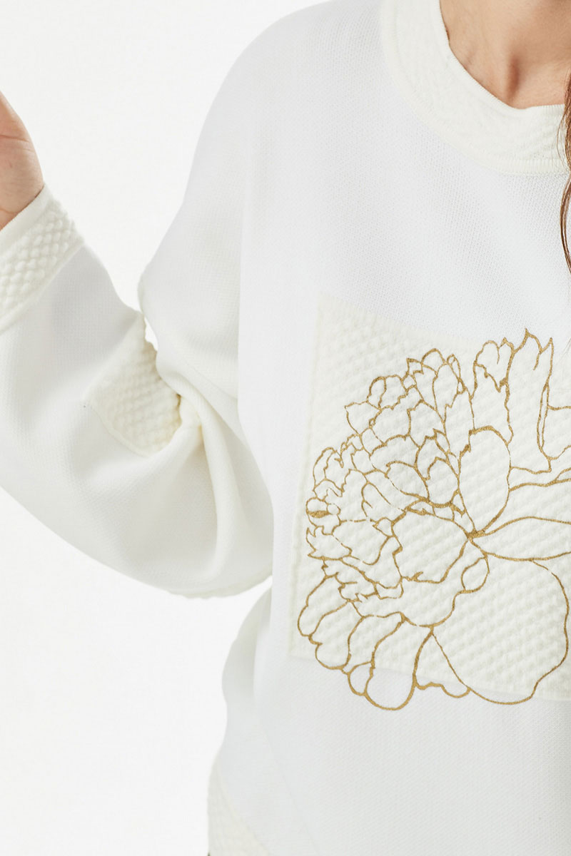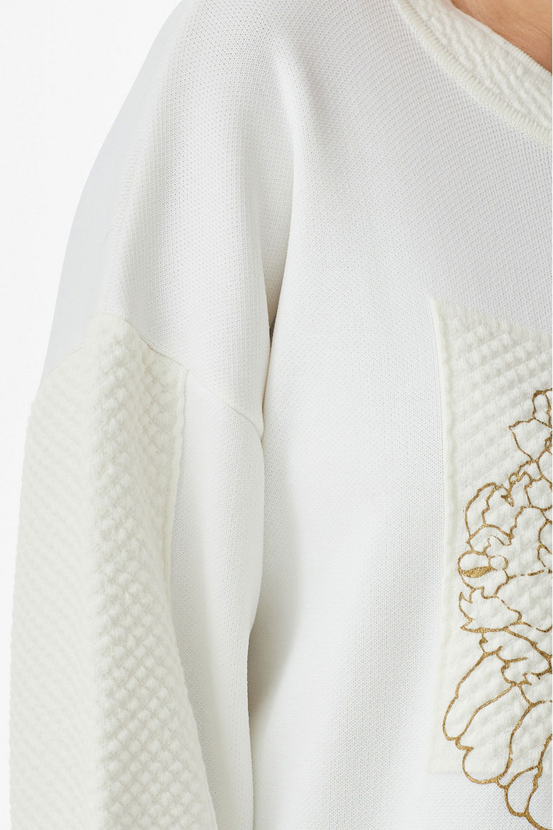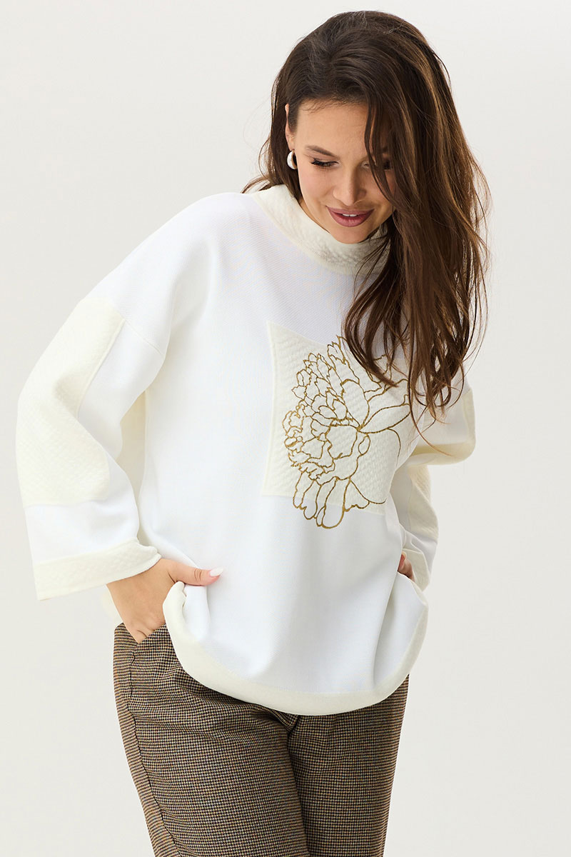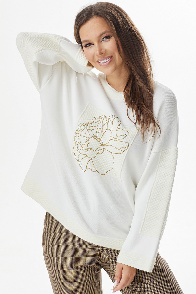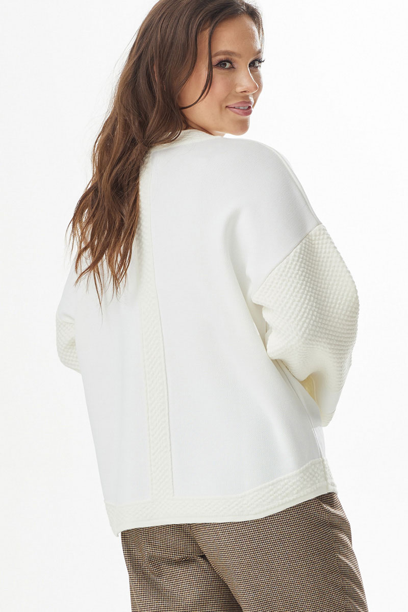 Вязаный джемпер свободного кроя. Рукав спущен. Джемпер выполнен из качественной пряжи премиум класса разных фактур. Не скатывается. Приятный к телу. Дополнен качественной декоративной печатью.