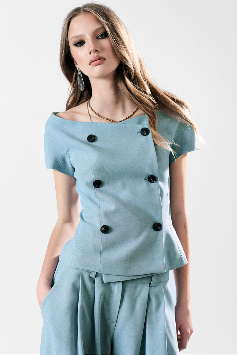 Жилет прилегающего силуэта, по переду нагрудные вытачки и рельеф. Жилет на подкладке. Длина - до линии бедер.