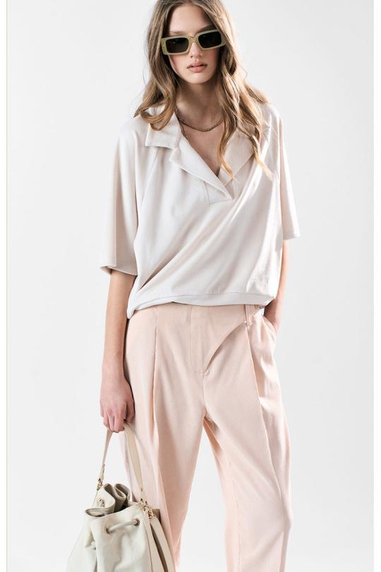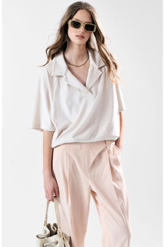 Джемпер с воротником поло из приятного мягкого бархата-велюра. Свободный силуэт, рукав-реглан. Два универсальных размера - S (42-44-46). M (48-50-52).