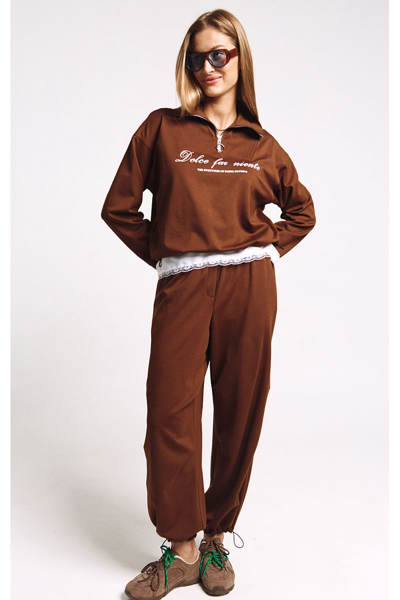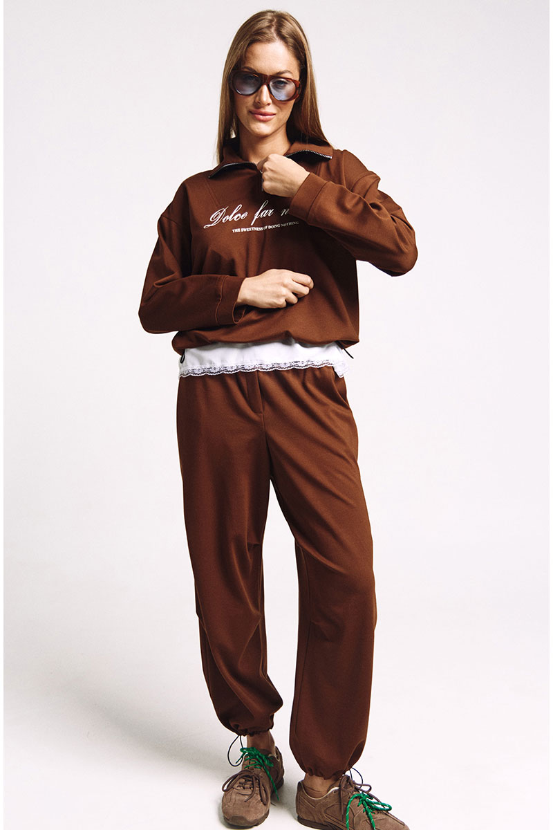 Костюм в цвете корица из приятного вискозного трикотажа.