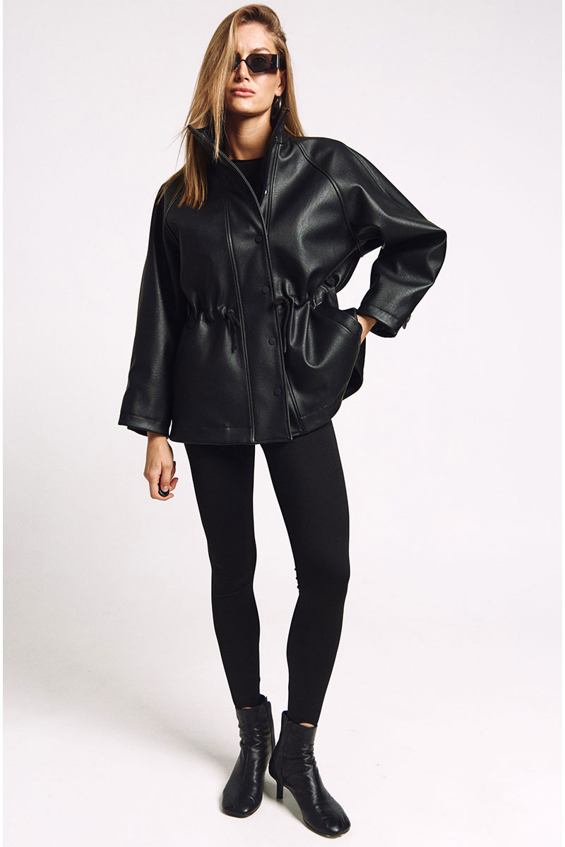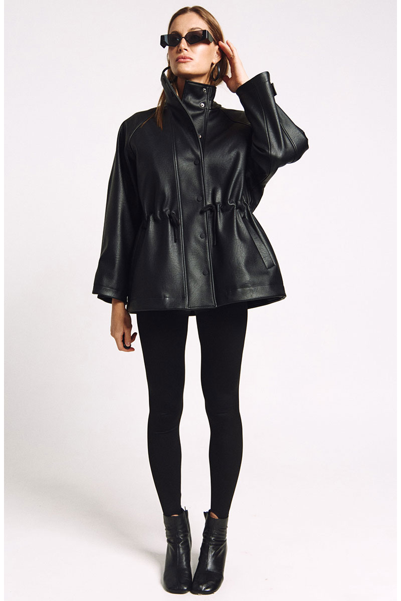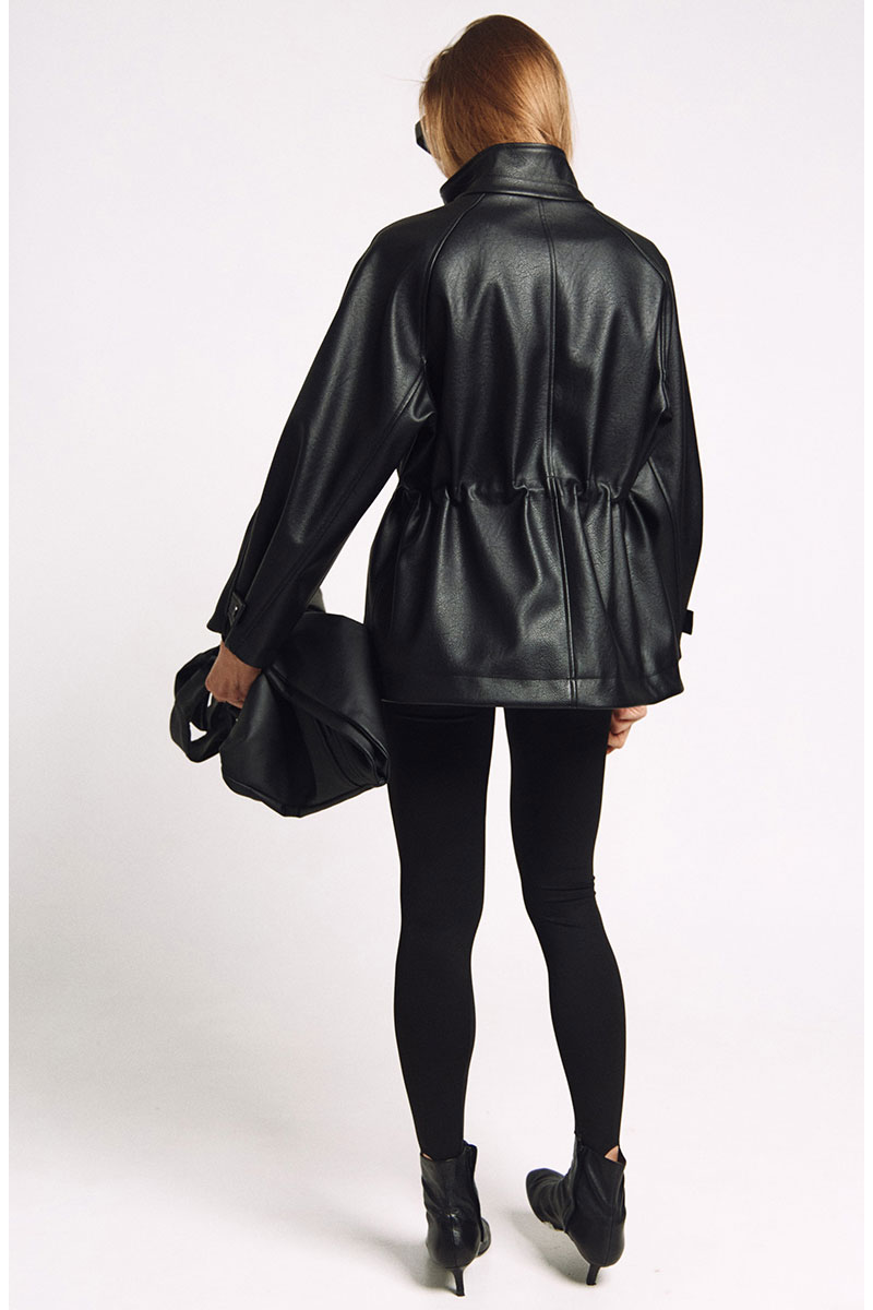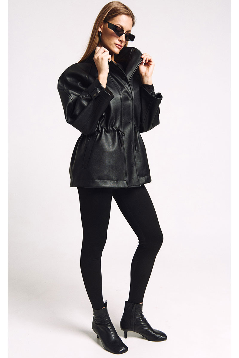 Утепленный кожаный жакет-парка со стойкой. Широкий рукав, ширина которого регулируется кнопками. Очень плотная экокожа. Хорошо держит форму. Подкладка утеплена Isosoft 100.