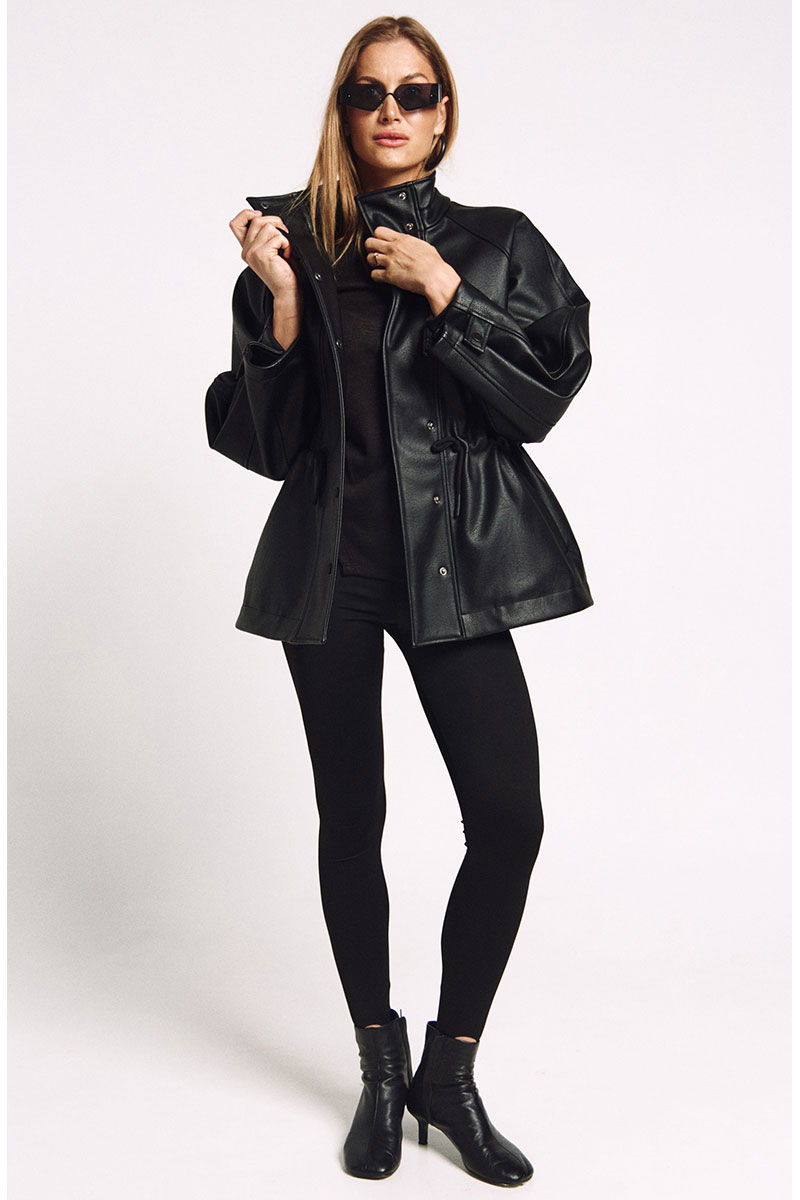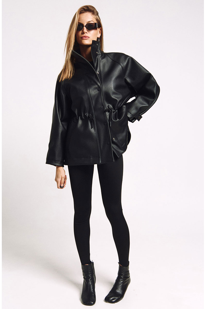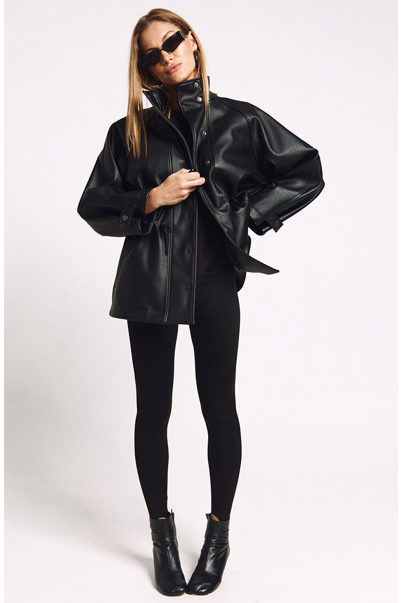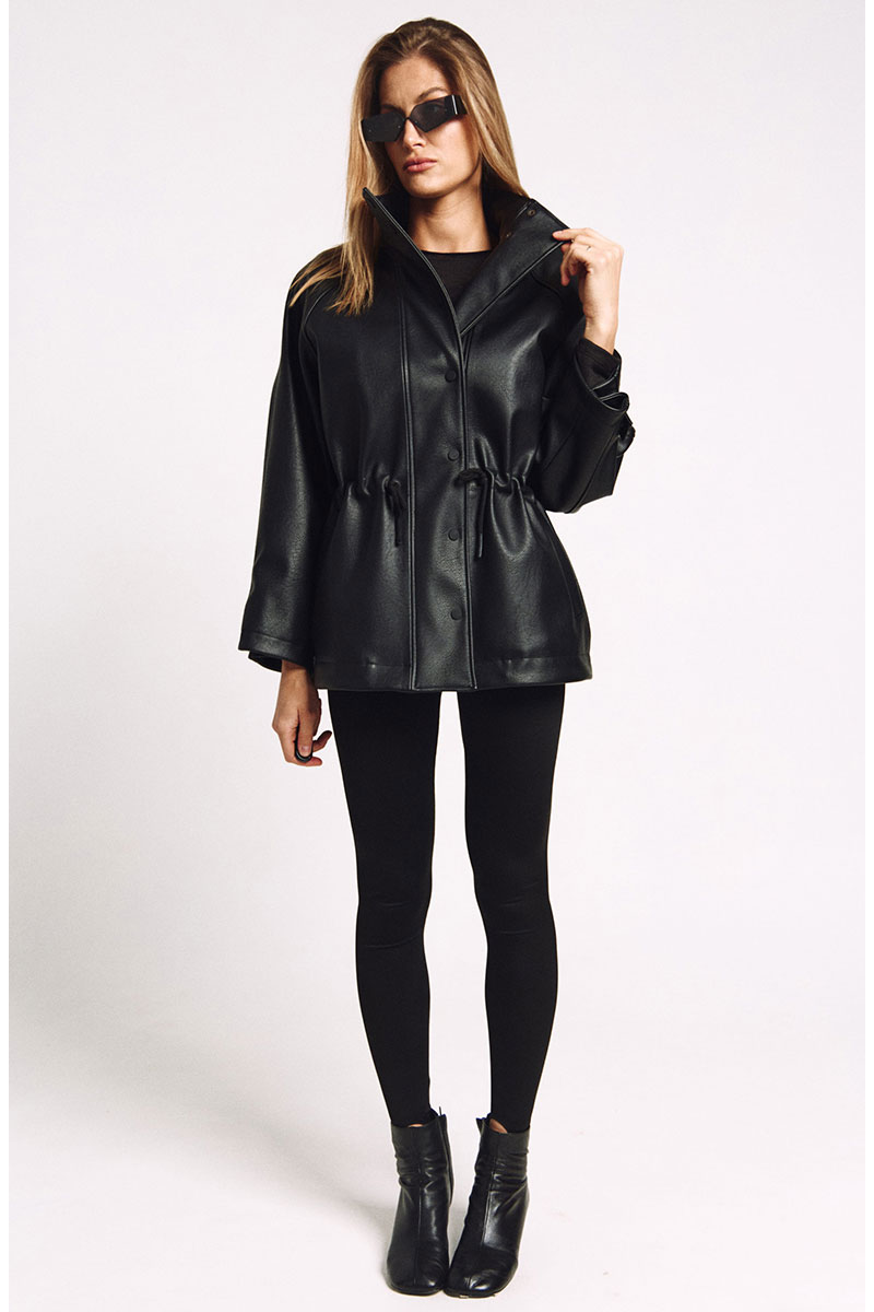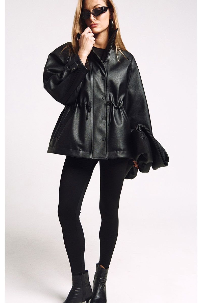 Утепленный кожаный жакет-парка со стойкой. Широкий рукав, ширина которого регулируется кнопками. Очень плотная экокожа. Хорошо держит форму. Подкладка утеплена Isosoft 100.