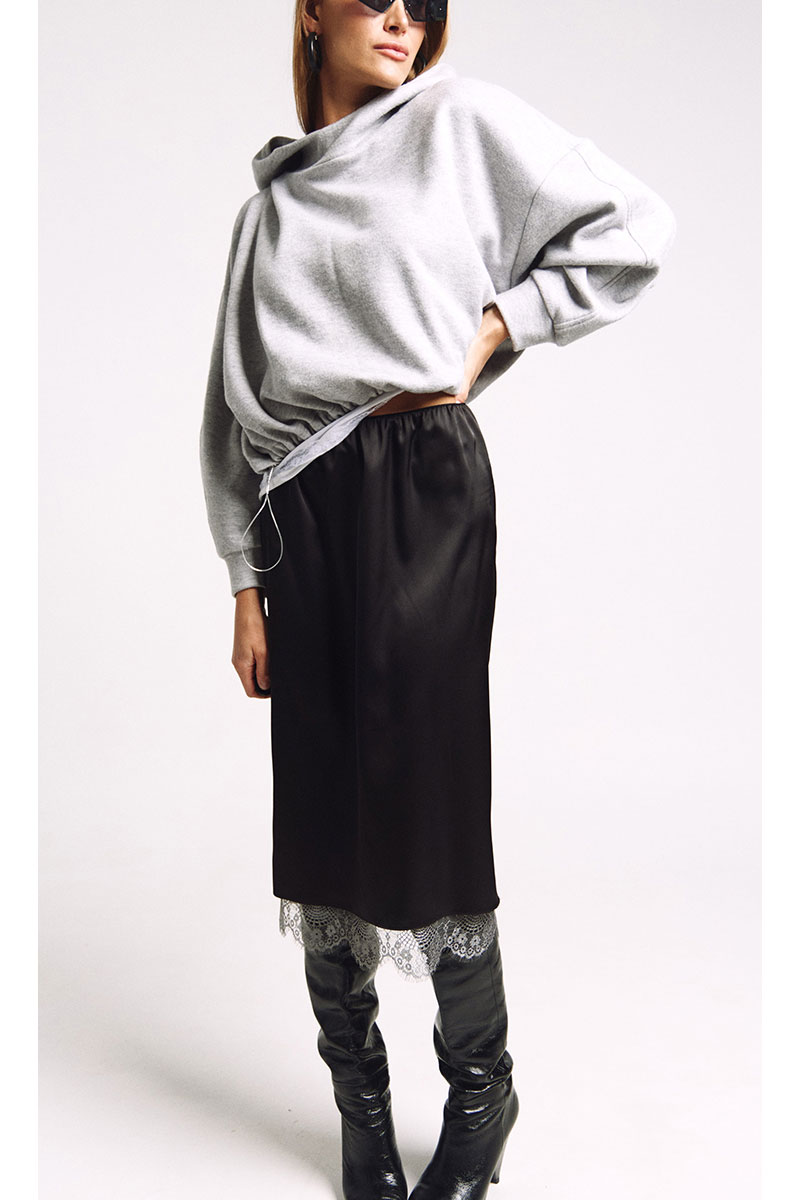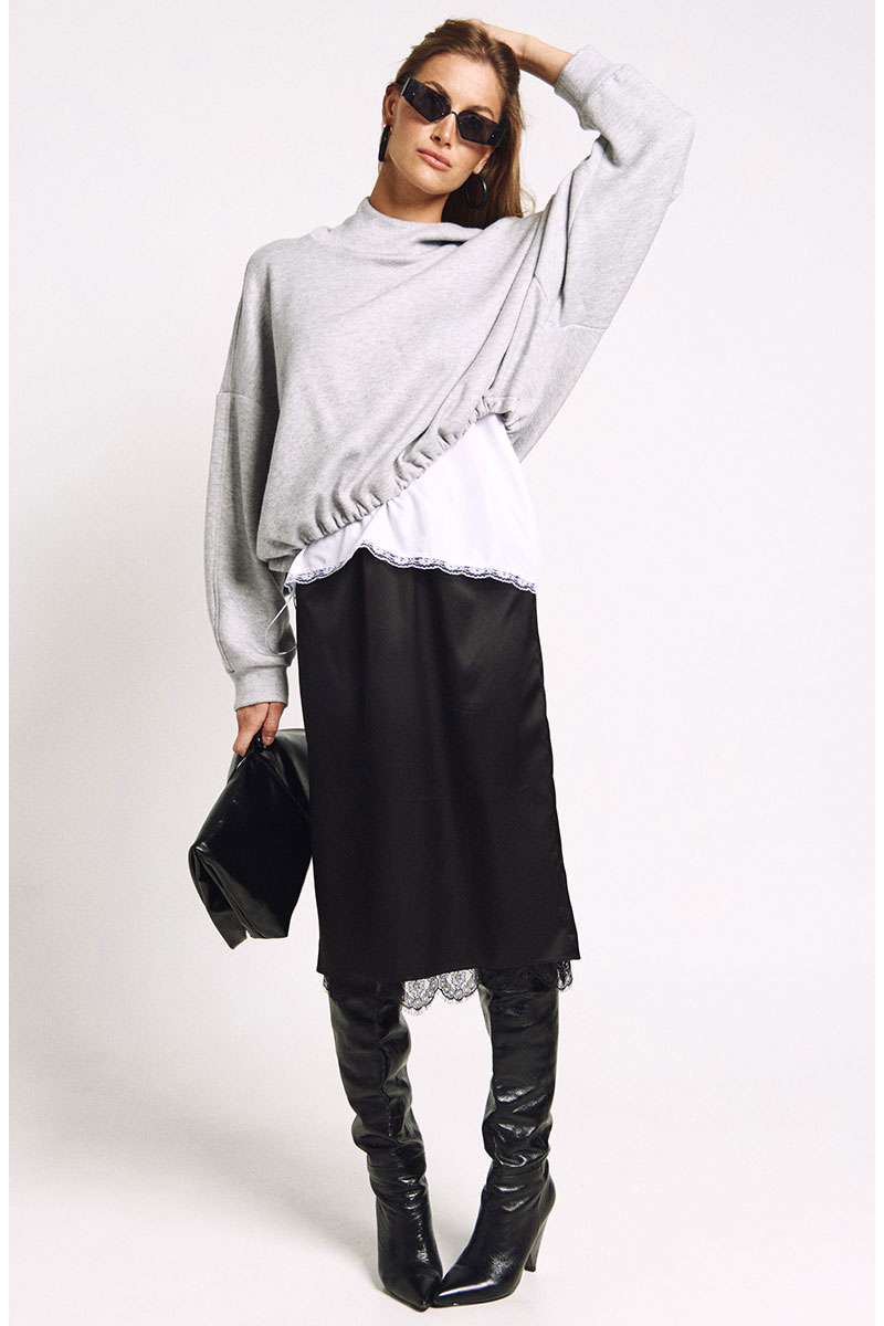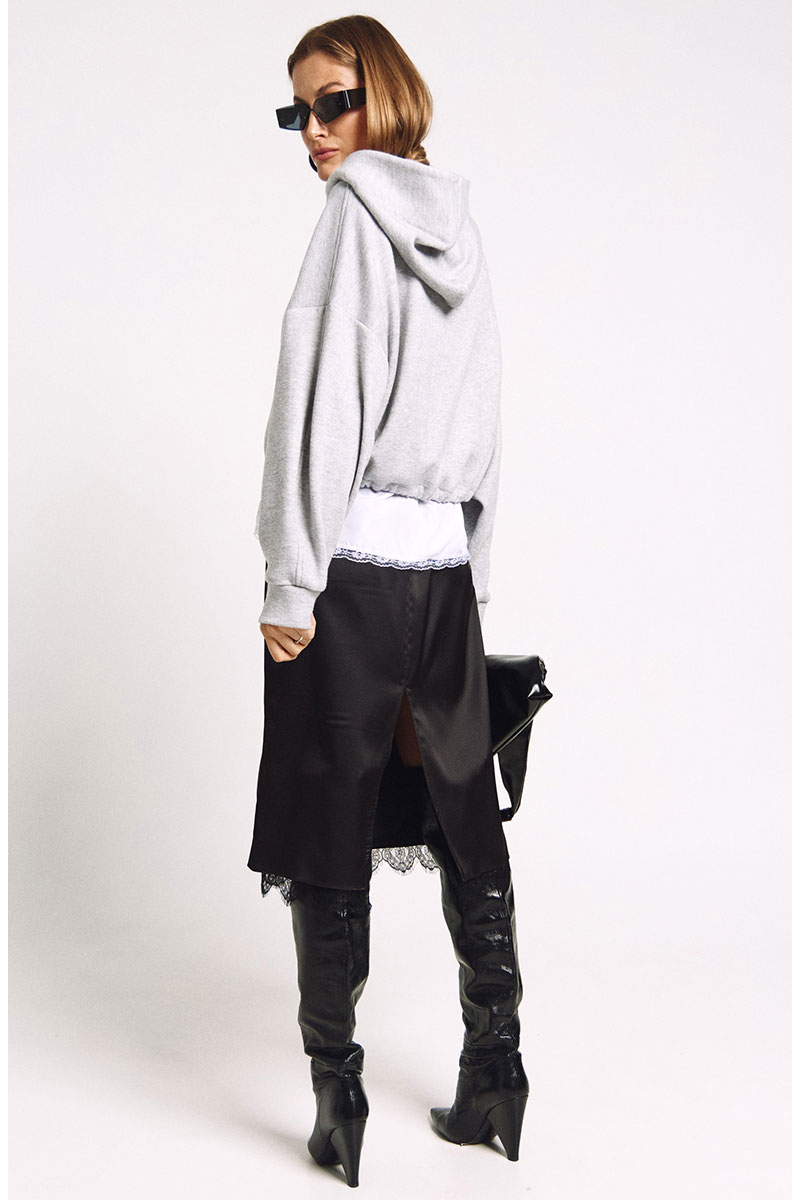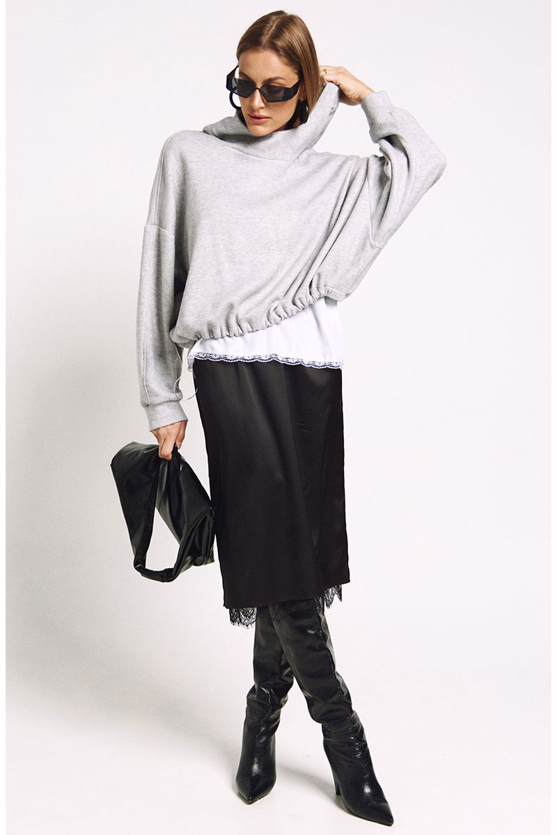 Худи большого объема с необычным капюшоном-стокой. Ширина низа худи регулируется резинками.