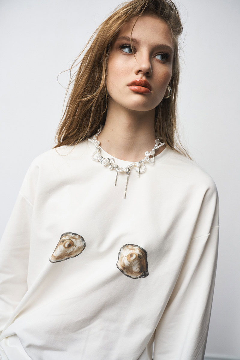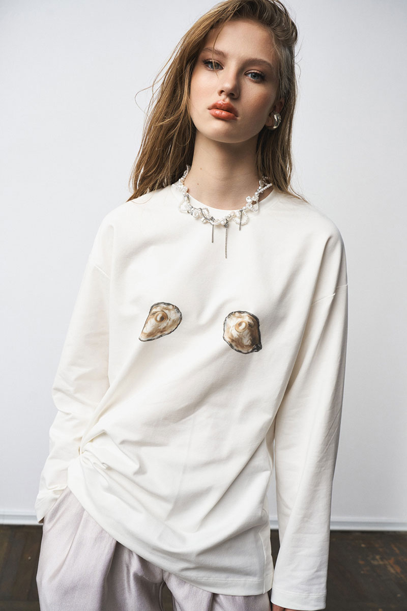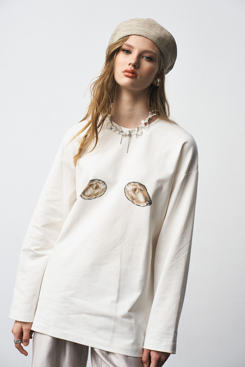 Лонгслив свободного силуэта, с принтом.