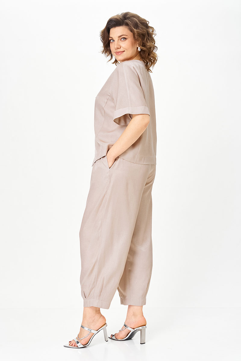 Свободный крой не утяжеляет фигуру, а наоборот делает силуэт лёгким и современным. Костюм комфортен в течение всего дня и идеально подходит для тёплого сезона.