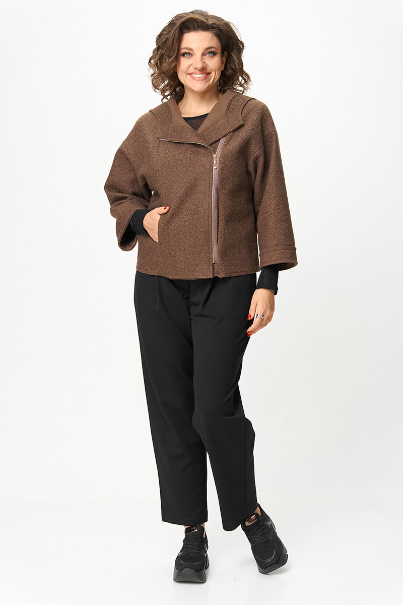 Курточка из букле — особая изюминка комплекта. Благодаря рукаву ? она универсальна: зимой её удобно носить в помещении как дополнительный слой, а весной, летом и осенью — как
