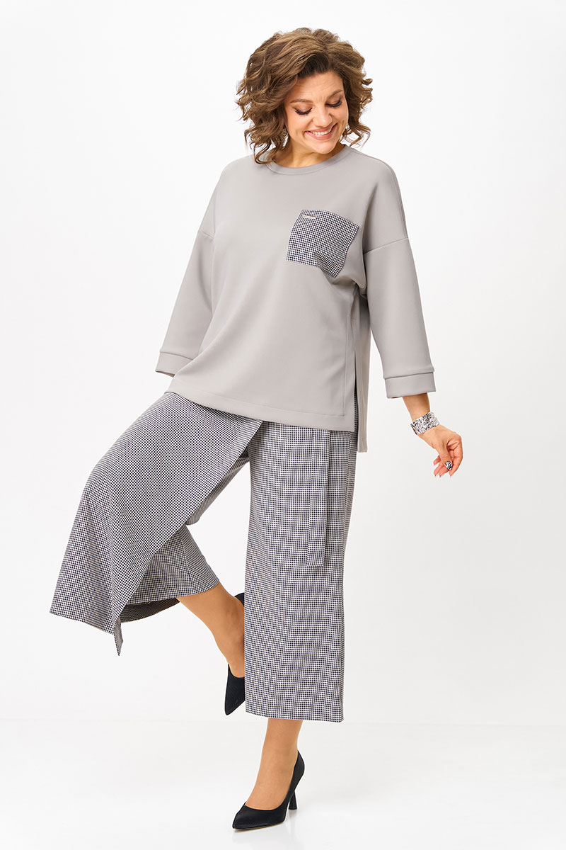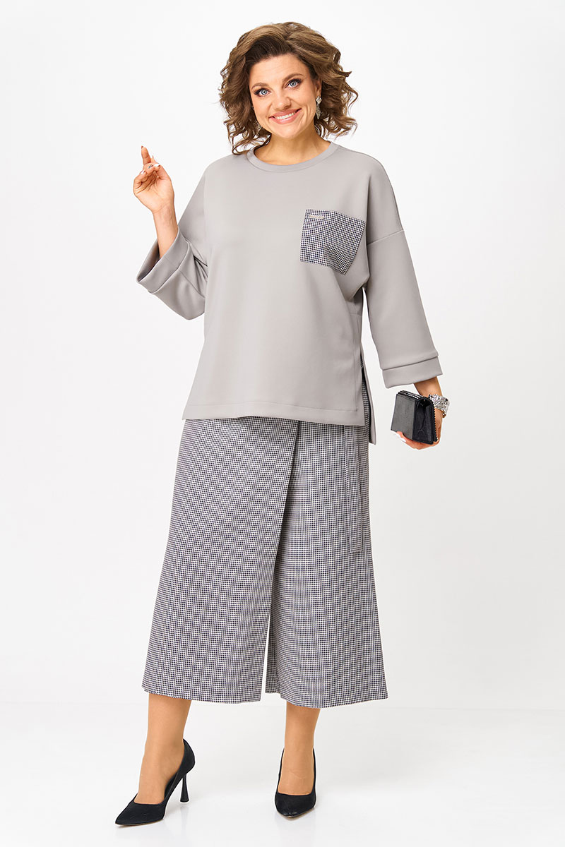 Стильный женский костюм для осени. Идеальное сочетание утонченного стиля и удобства — этот костюм создан для современных женщин, ценящих элегантность в повседневной жизни. Комплект состоит из брюк-кюлотов с элегантным запахом и трикотажного джемпера.