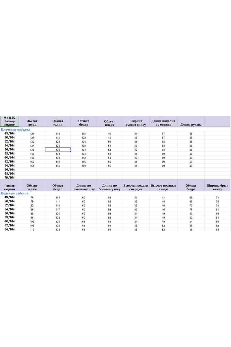 Длина брюк по боковому шву 92 см, шаговому — 60 см.