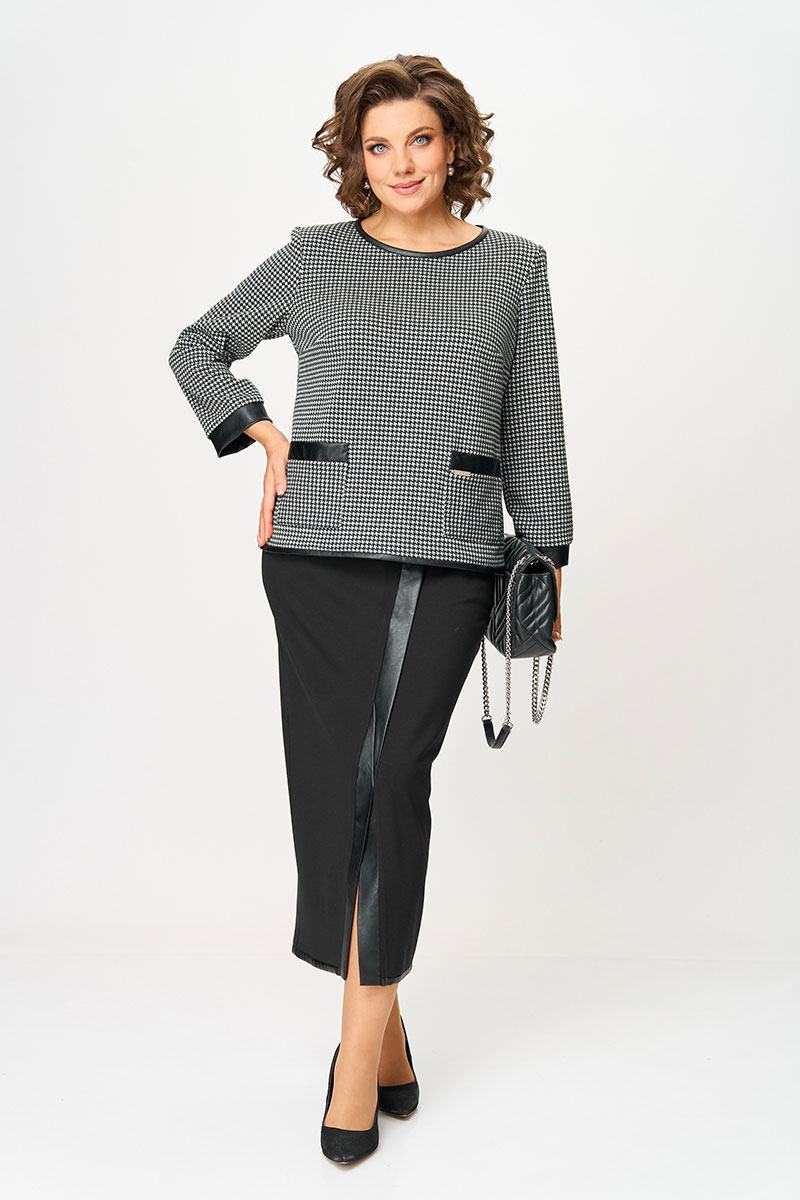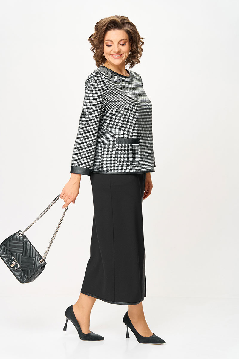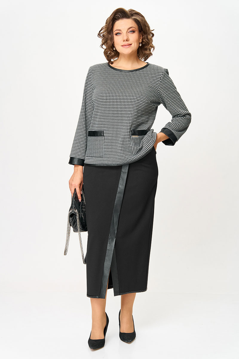Элегантный и универсальный женский юбочный комплект — идеальный выбор для повседневных образов. Этот стильный комплект состоит из уютного джемпера и длинной юбки, выполненных из мягкого трикотажа средней плотности с изысканной кожаной отделкой.