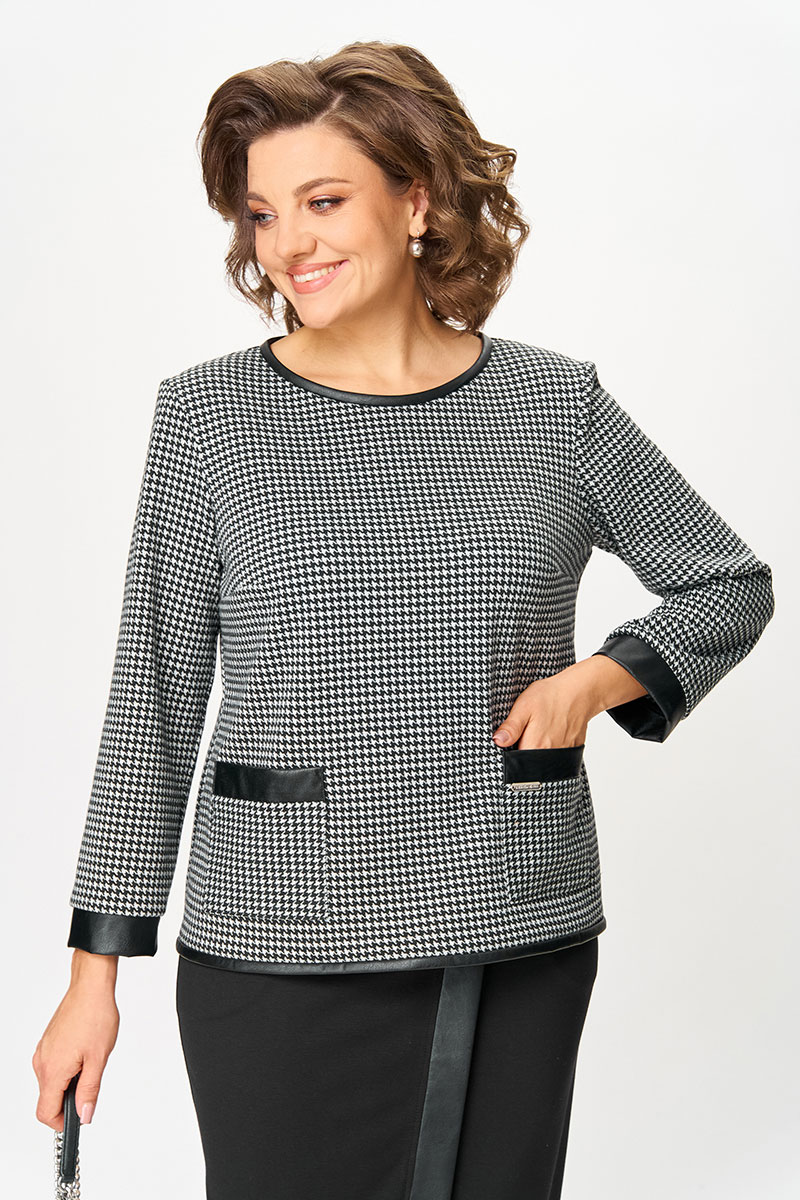 Джемпер с прямым полуприлегающим силуэтом длиной до бедер подчеркнет вашу фигуру и обеспечит комфорт в течение всего дня. Круглый вырез горловины, нагрудные вытачки и два функциональных накладных кармана добавляют образу нотки изящества и практичности. Спинка украшена разрезом с застежкой на тесьму-молнию, что придает модели современный акцент. Рукав длиной 3/4 делает образ более легким и универсальным.