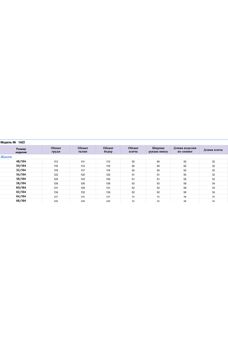 Длина жакета по спинке — 55 см +/- 1 см.