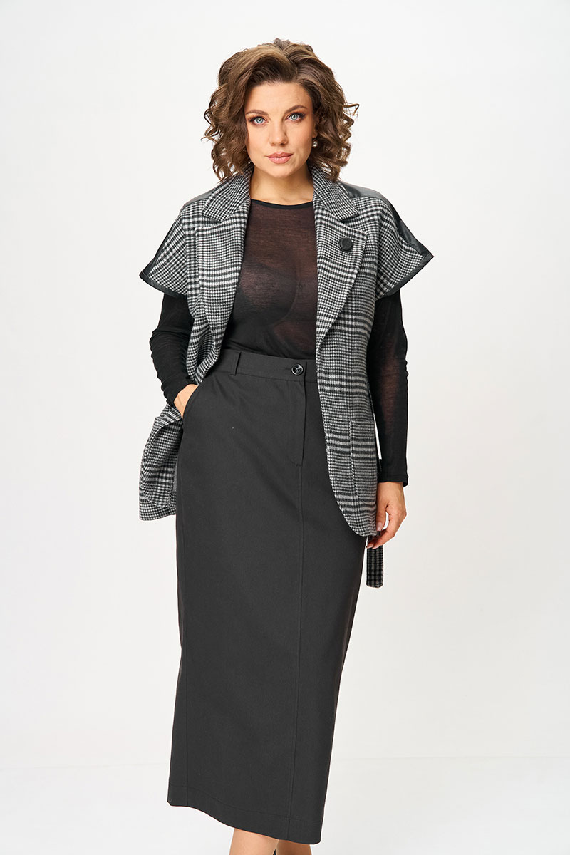 Обновите свой гардероб с нашим трендовым женским комплектом, который идеально подойдет для любого случая! В него входит элегантный распашной жилет и изящная юбка-миди — универсальный дуэт для создания модных образов.