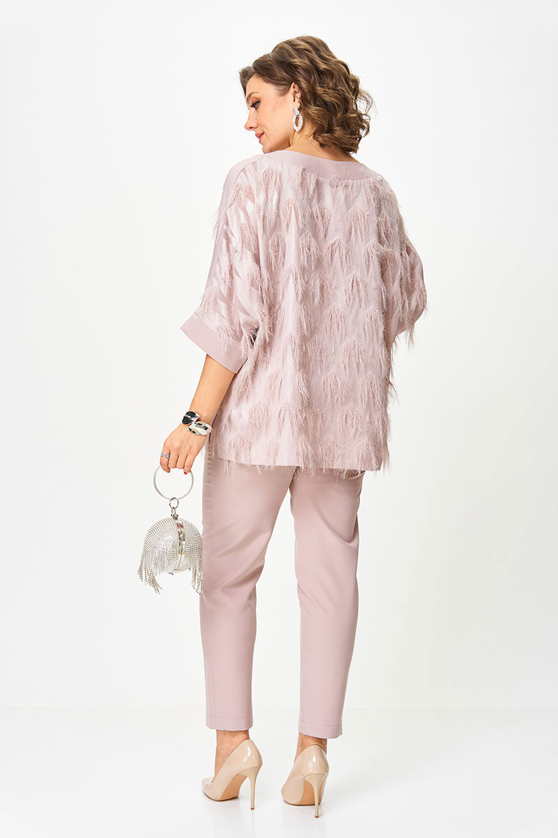 Элегантный комплект, в котором вы почувствуете себя богиней. Лёгкая блуза с фактурой «реснички» добавляет праздничного сияния и легко комбинируется с другими юбками или брюками.