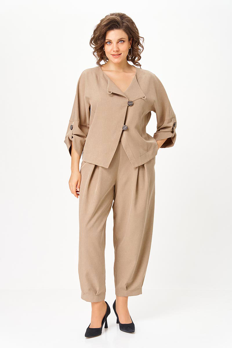 Универсальный костюм, который выглядит дорого и современно, но при этом дарит комфорт и лёгкость. Его можно носить как комплект или по отдельности: жакет с асимметричной застёжкой и