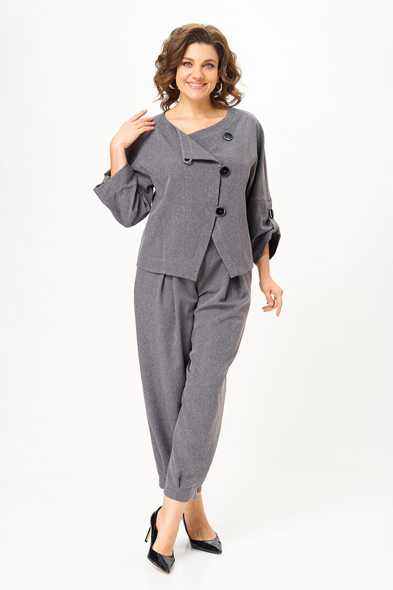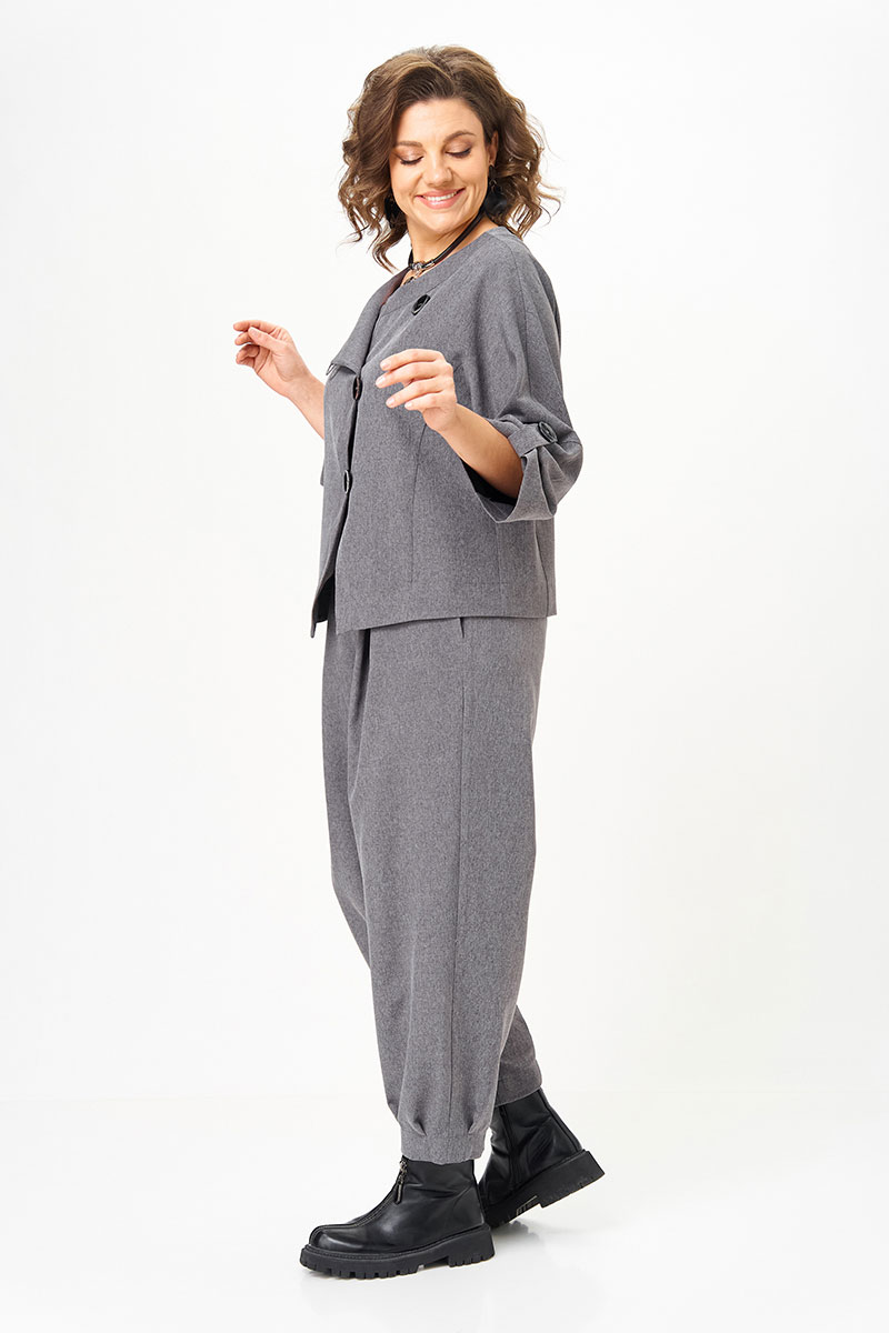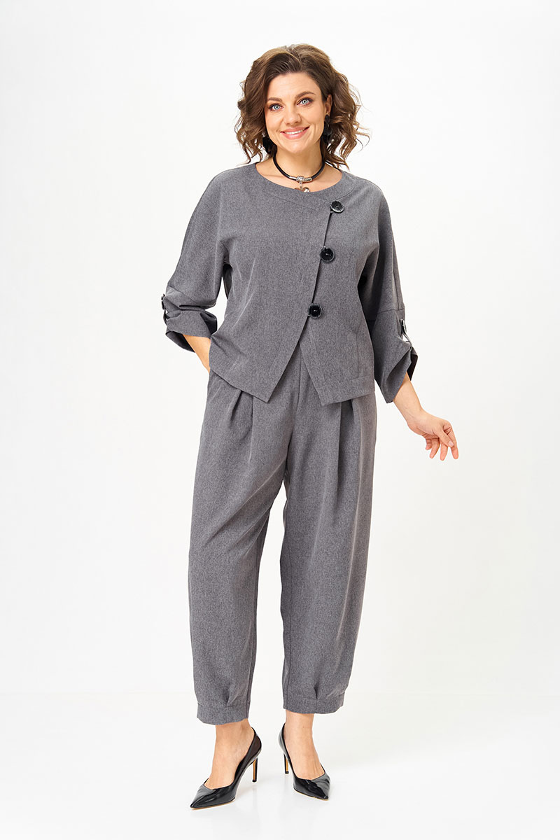 Универсальный костюм, который выглядит дорого и современно, но при этом дарит комфорт и лёгкость. Его можно носить как комплект или по отдельности: жакет с асимметричной застёжкой и