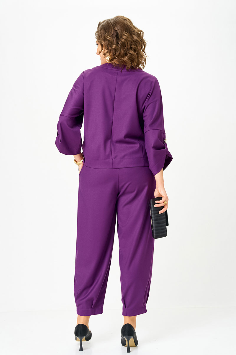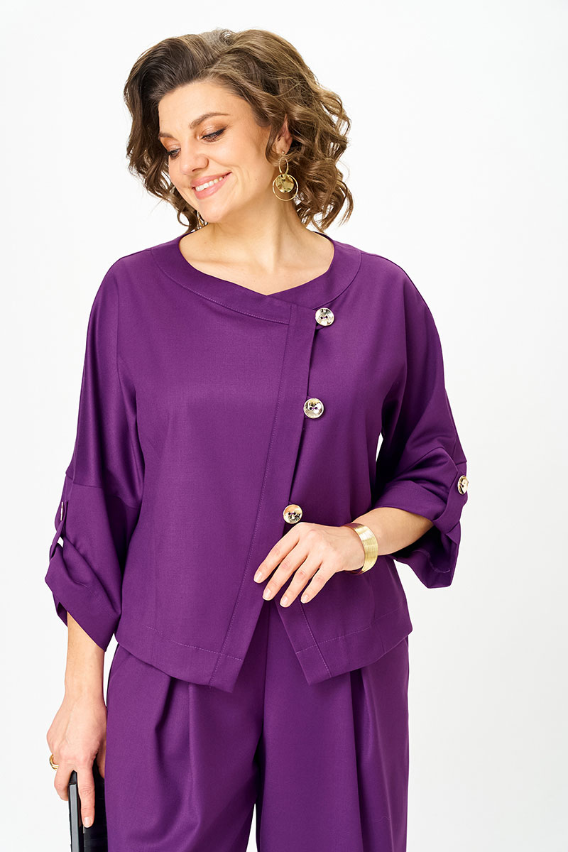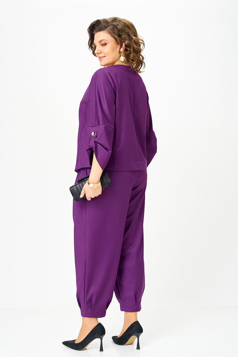 Этот костюм создан для женщины, которую невозможно не заметить. Глубокий пурпур — насыщенный, благородный, притягивающий взгляд — делает образ выразительным и статусным. Асимметричная