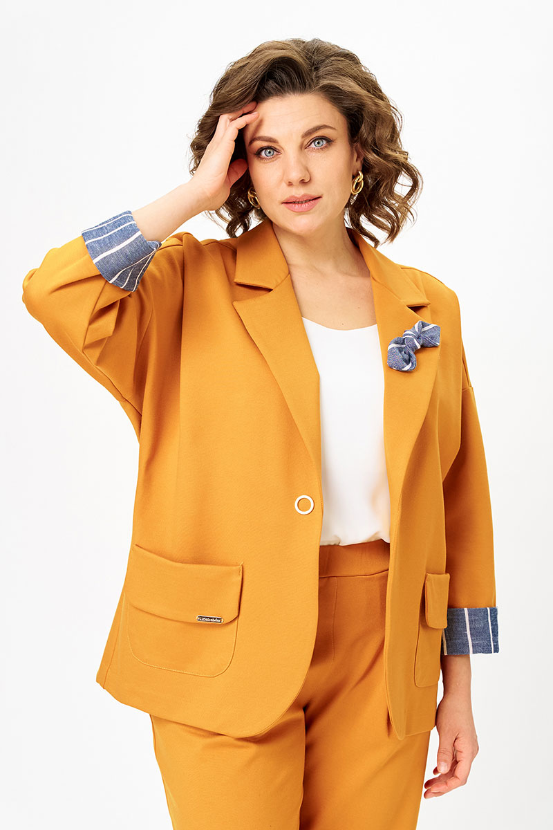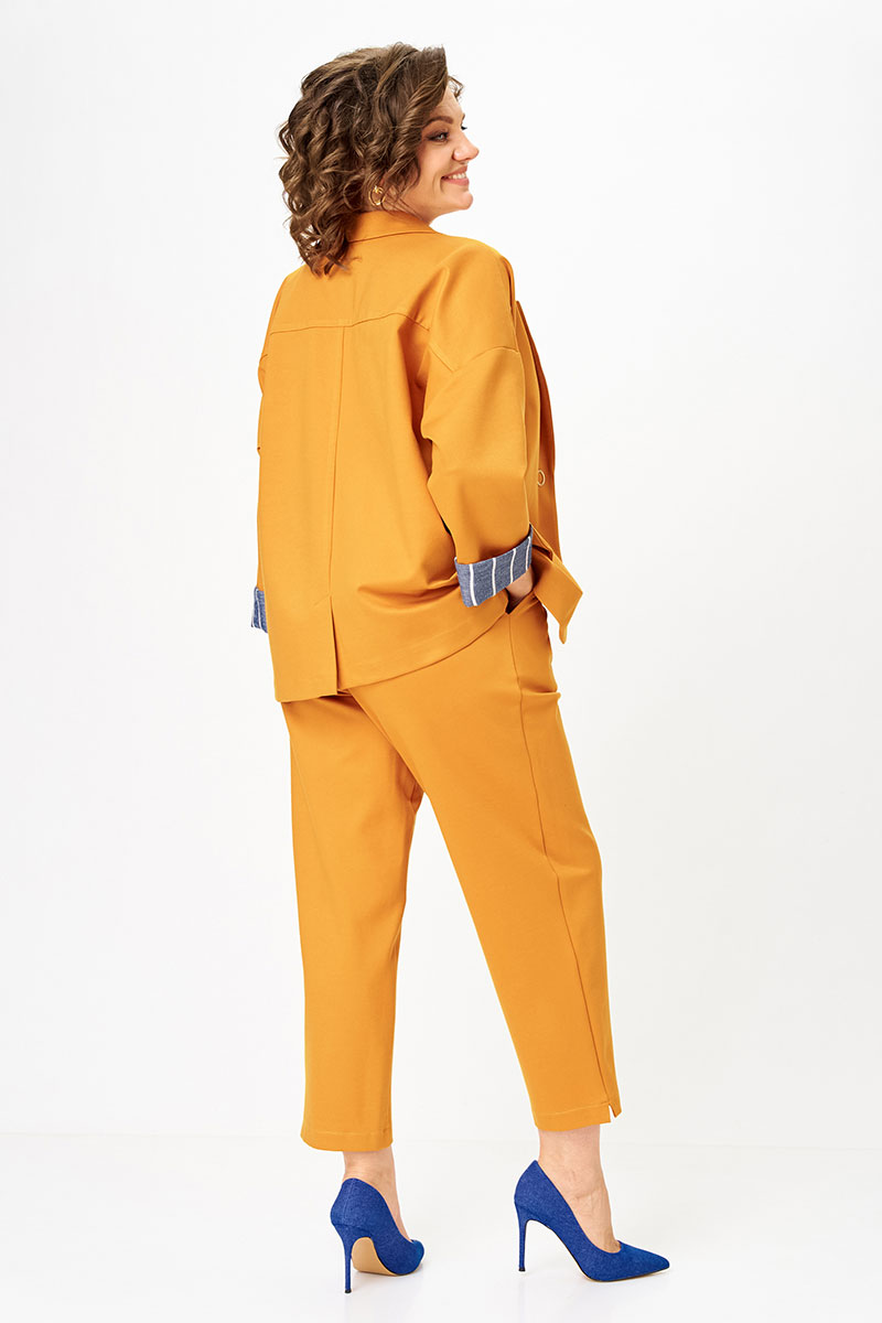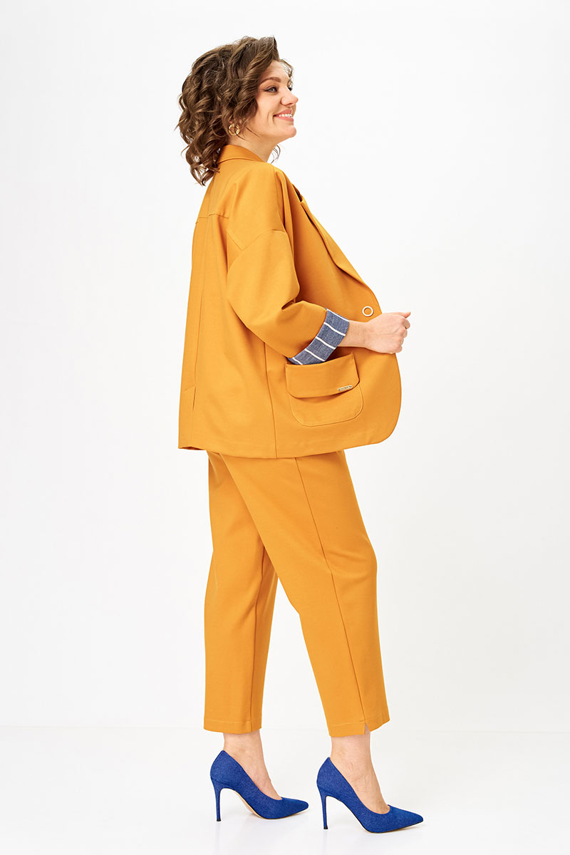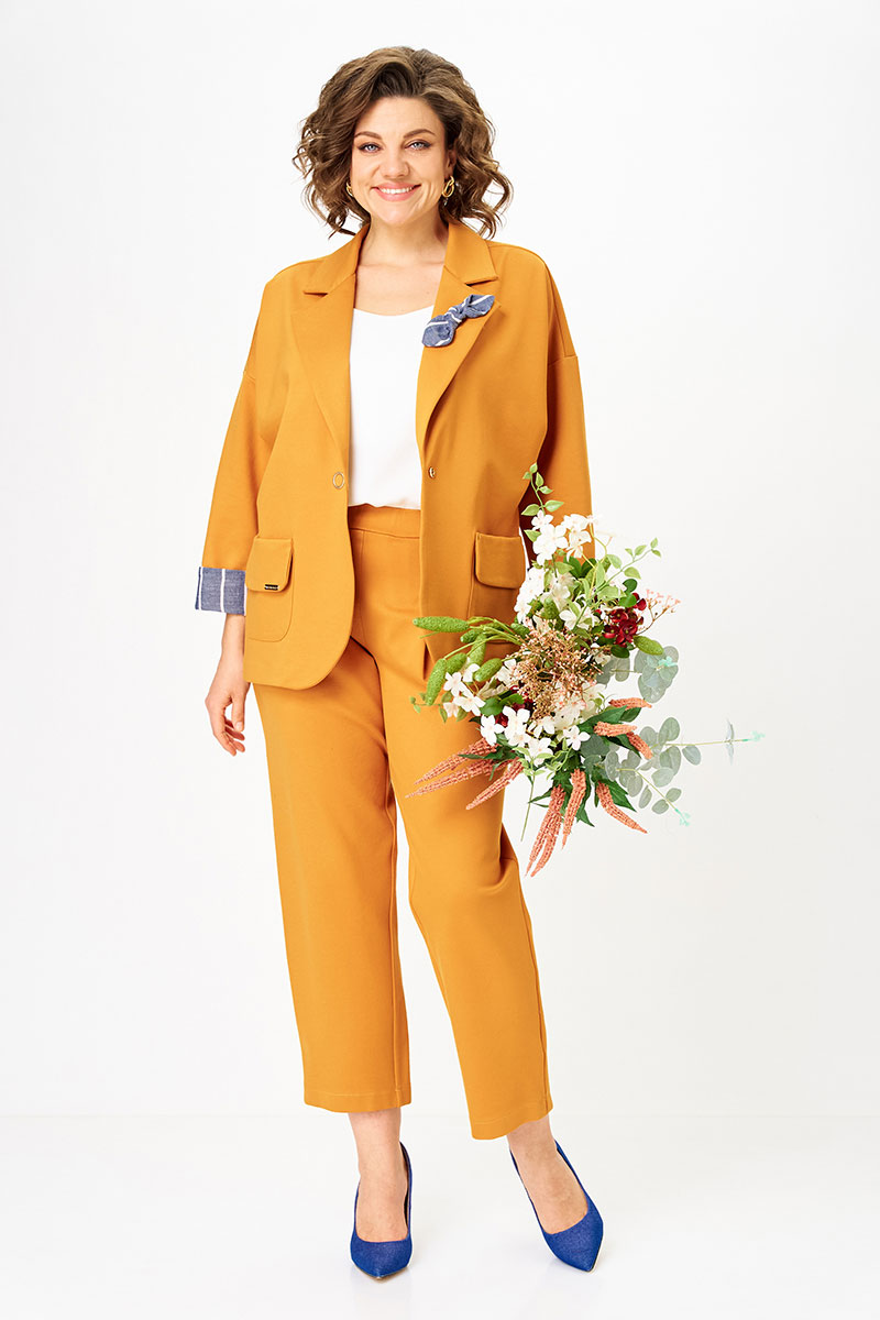 Обновлённый вариант нашего бестселлера - костюм, который уже в этом году взорвал продажи. Цвет манго — тёплый, сочный, живой - задаёт настроение и работает как стильный акцент в