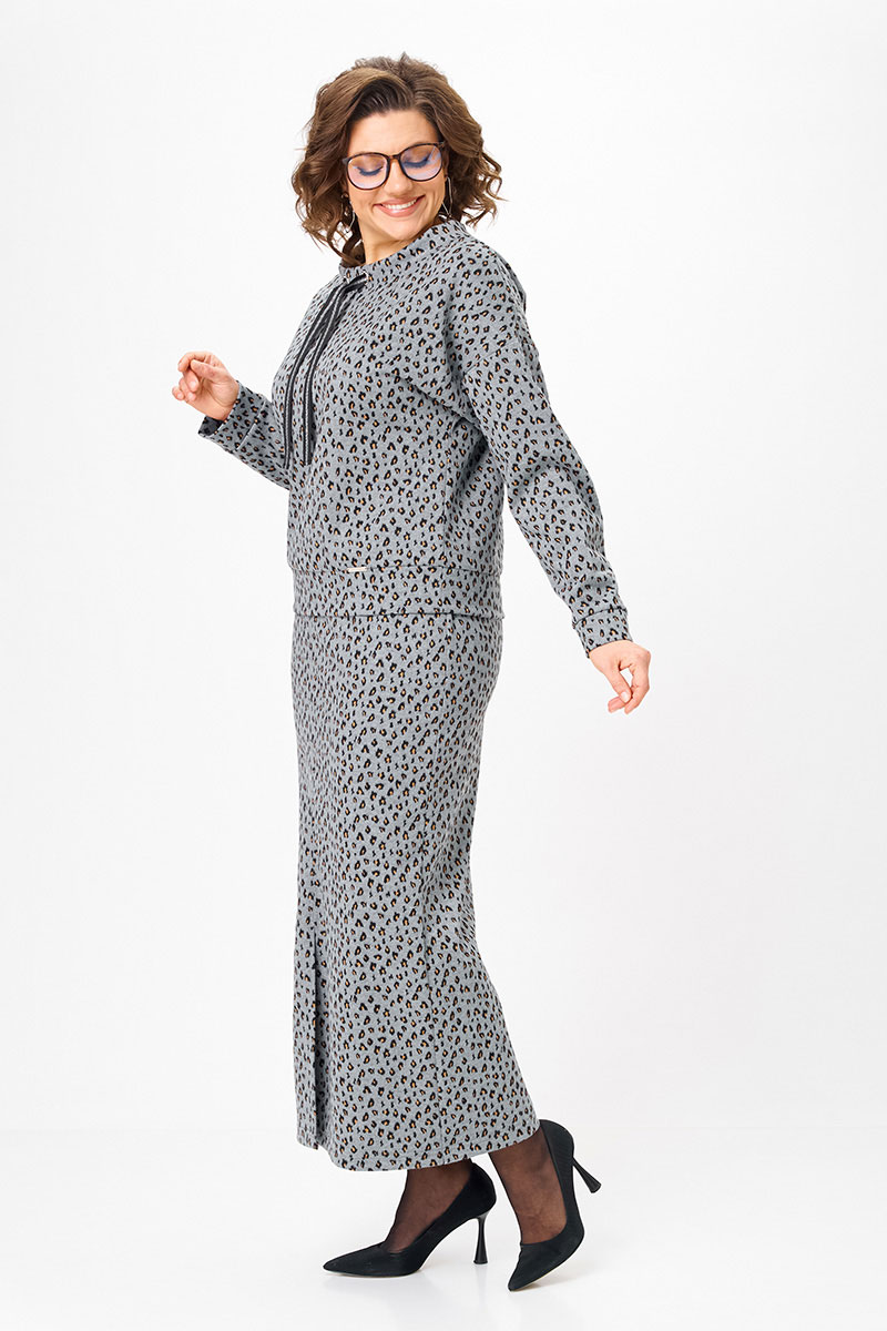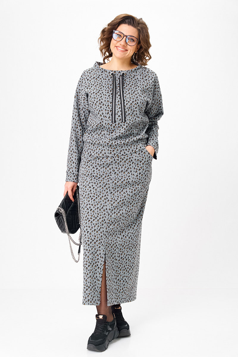 Плотный трикотаж хорошо держит силуэт, не «плывёт» и не вытягивается, при этом остаётся комфортным в движении. Принт — деликатный, небанальный, выглядит дорого и актуально вне