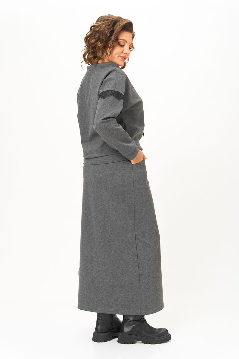 Позвольте себе выглядеть идеально даже в повседневной жизни! Этот модный женский костюм из плотного трикотажа, насыщенного графитового цвета — ваш новый must-have: