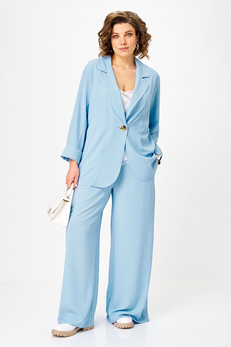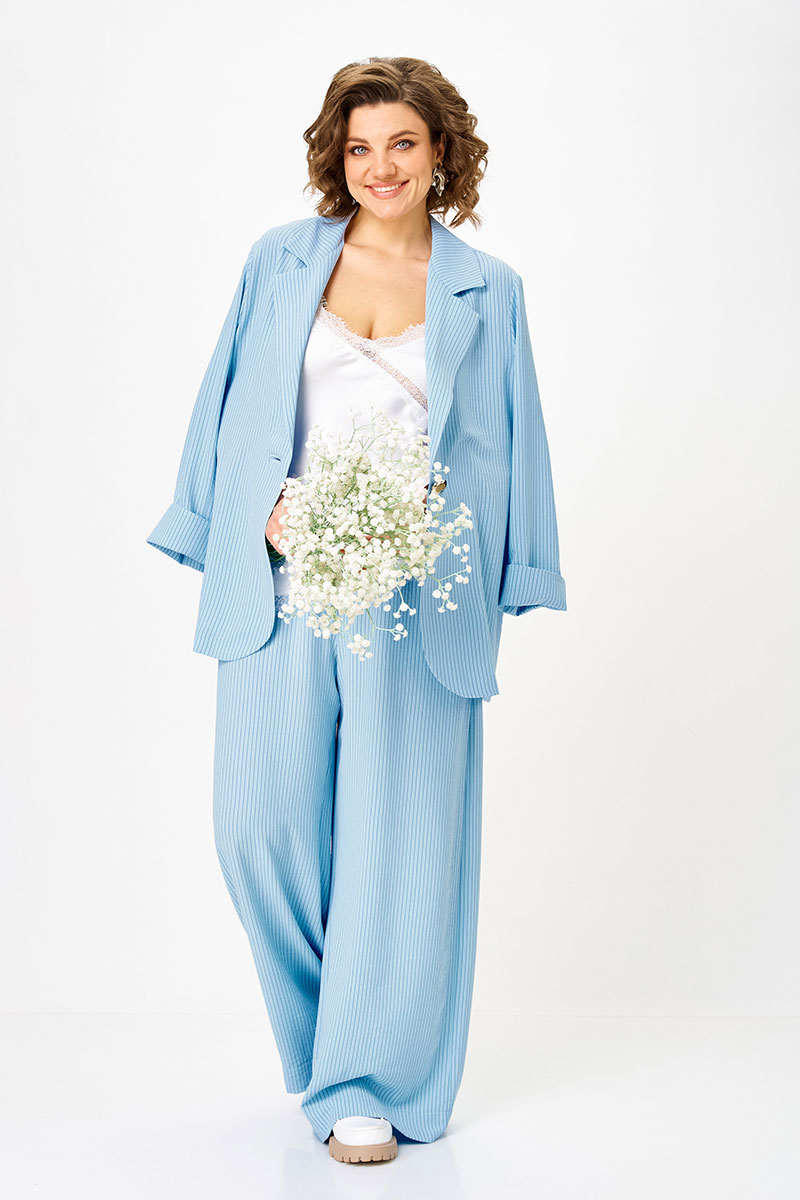 Есть вещи, которые сразу работают на образ. Этот костюм выбирают женщины, которым важны статус и лёгкость без суеты. Вертикальная полоска визуально вытягивает силуэт и стройнит, а