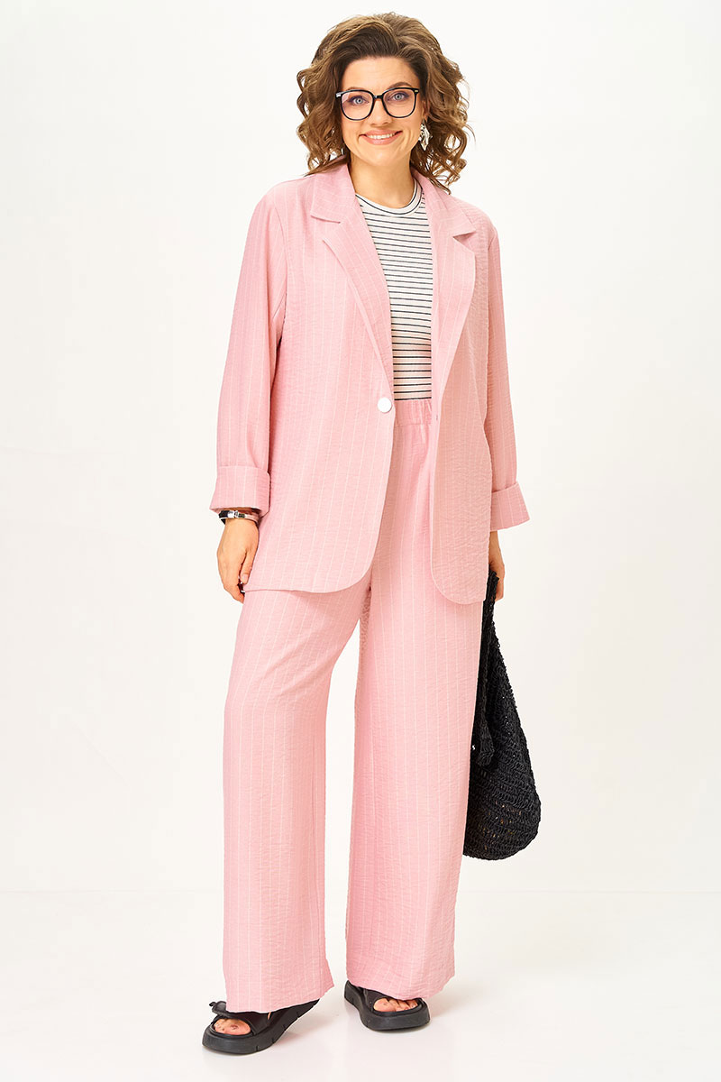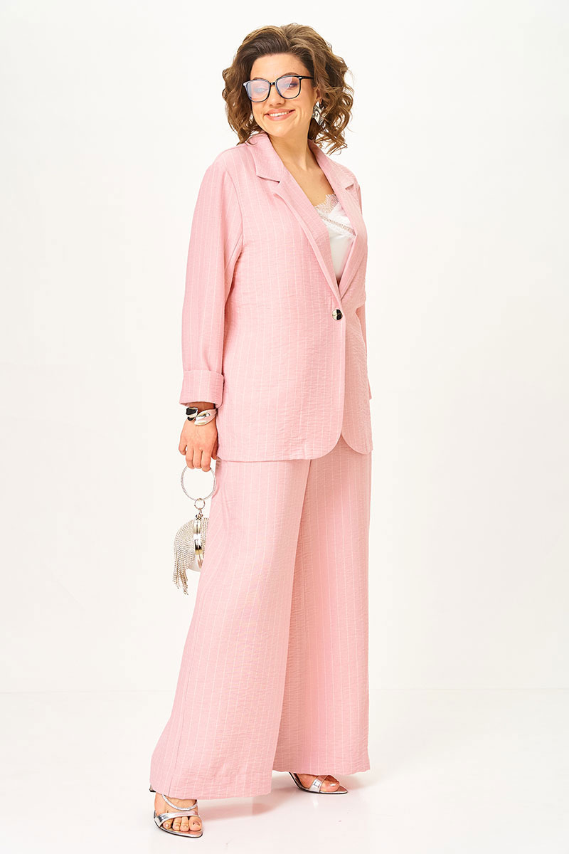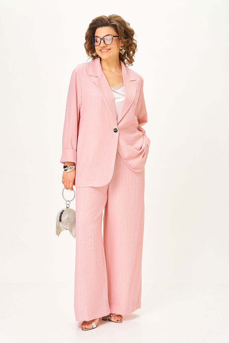 Современный женственный костюм из легкой струящейся ткани. Нежный зефирно-розовый цвет выглядит дорого и легко вписывается в гардероб, позволяя создавать как повседневные, так и более