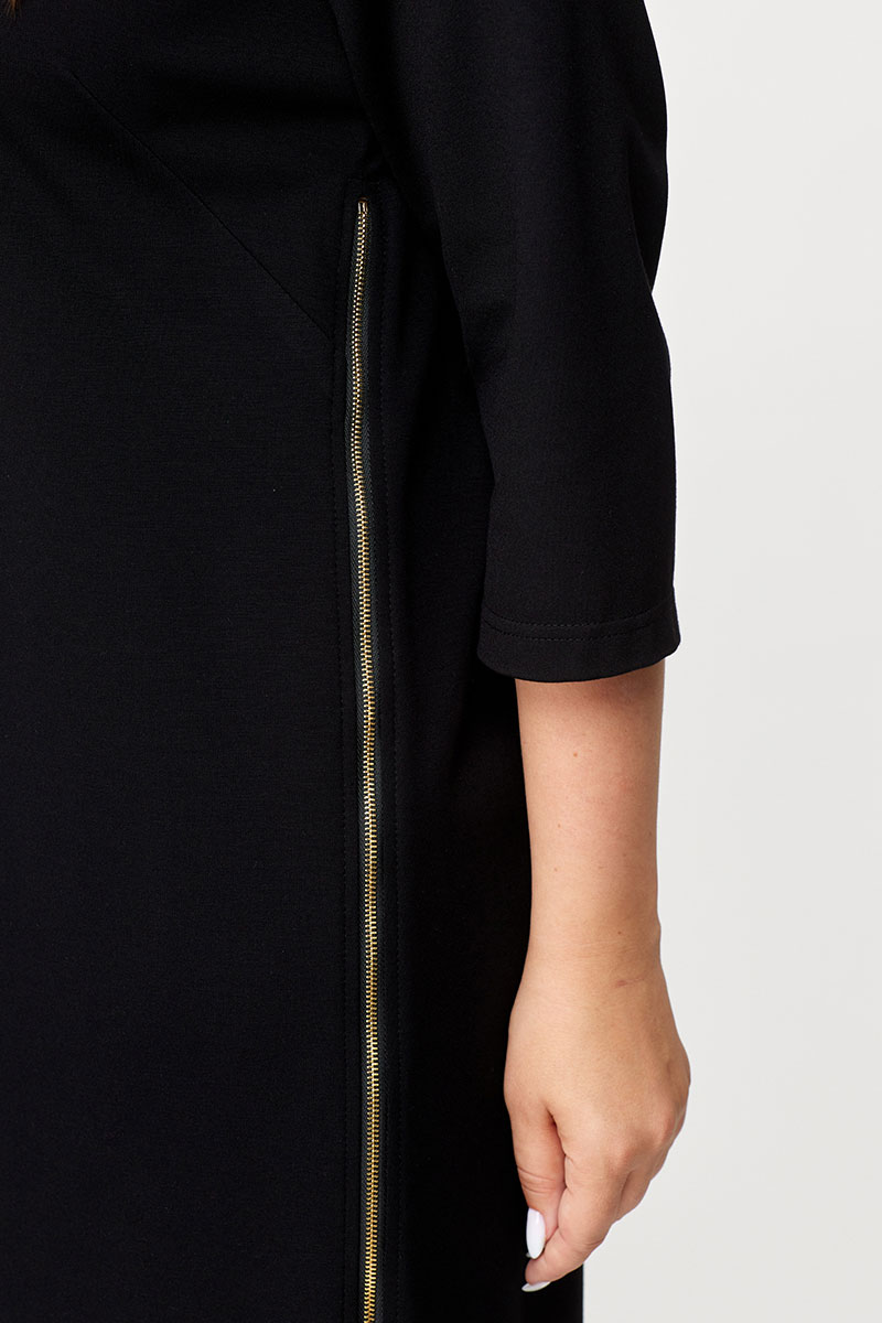 Эффектное и актуальное трикотажное платье. Изделие прекрасно подходящее для повседневной жизни, но также можно стилизовать под праздничный образ. Комфортный, прямой силуэт мягко сядет по фигуре и не будет сковывать ваших движений. Платье выполнено из приятного на ощупь трикотажа средней плотности, имеет спущенный рукав - длинной 7/8, по переду изделия карман. Украшением платья служит боковой разрез, который оформлен молнией. Платье прекрасно сочетается разной по стилю обувью.