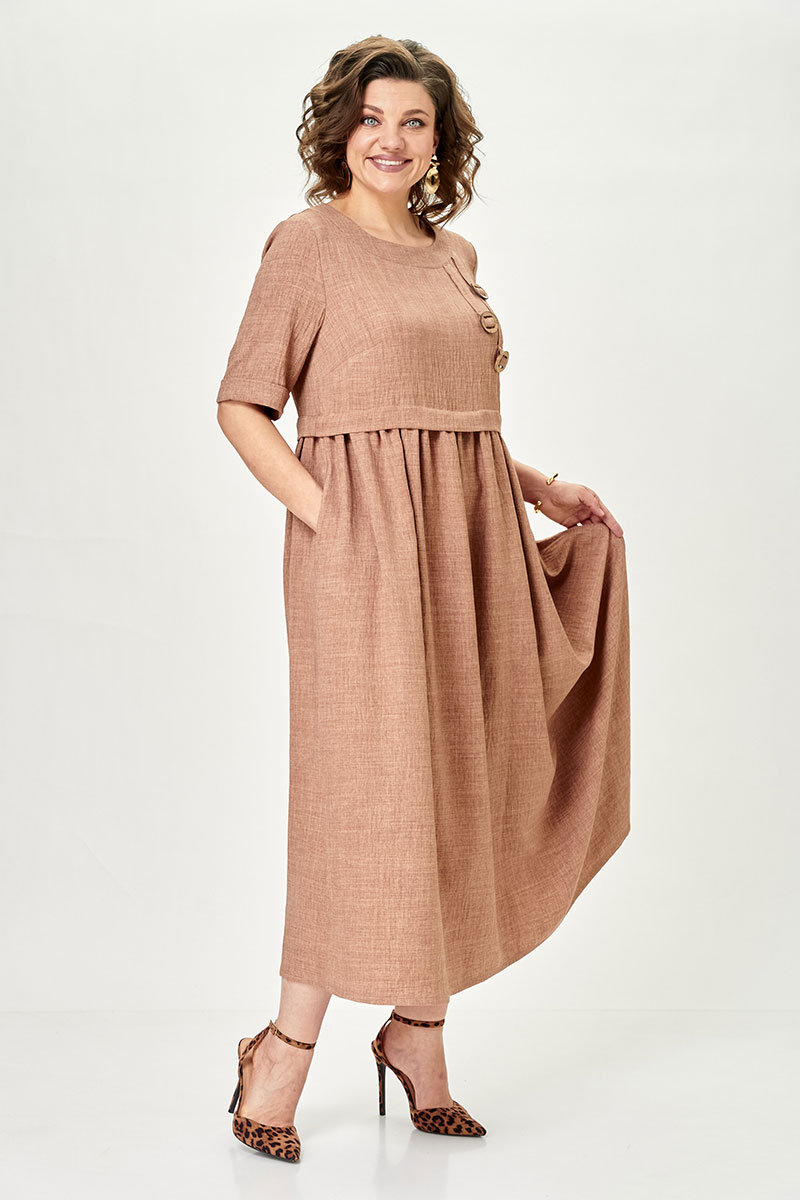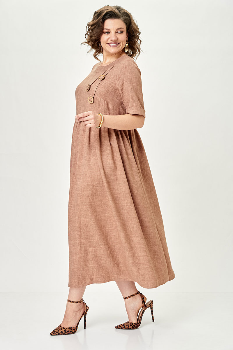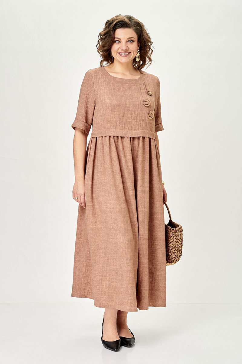 Это длинное платье свободного кроя, выполненное из легкого полиэстера. Идеальное решение для межсезонья — оно сочетает комфорт и элегантность. Миндальный оттенок придает образу